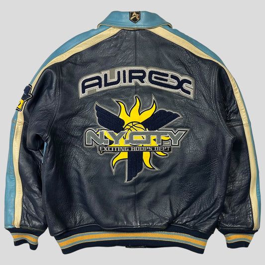 Avirex 90’s NYC Exciting Hoops Quilted Leather Varsity Jacket - XL