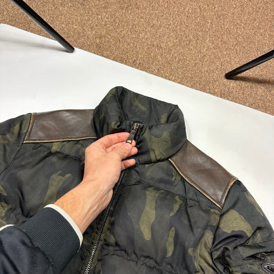 Prada Milano 2014 Green Camo Nylon Elder Down Leather Puffer - IT46