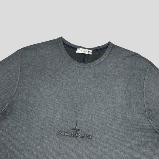 Stone Island 2003 Textured Cotton Embroidered Spellout T-shirt - L/XL