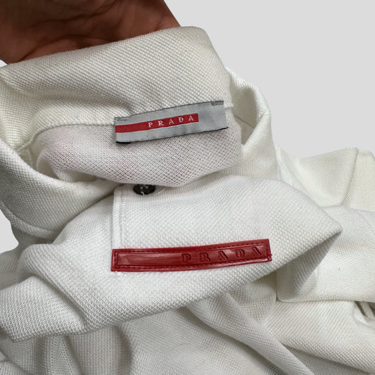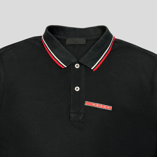 Prada Sport 2008 Embroidered Stripe Red Tab Polo Shirt - M