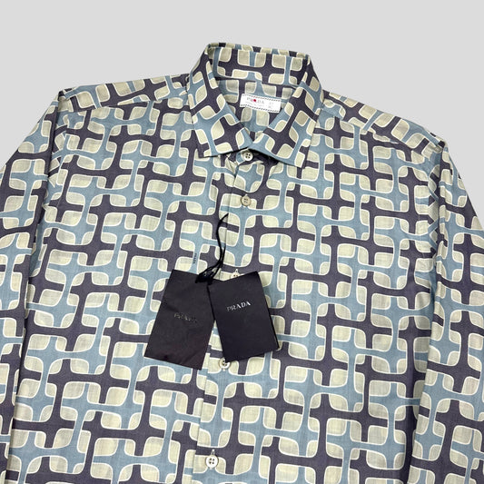 Prada 2020 Persian Geometric Print Boxy Cotton Logo Shirt - M/L