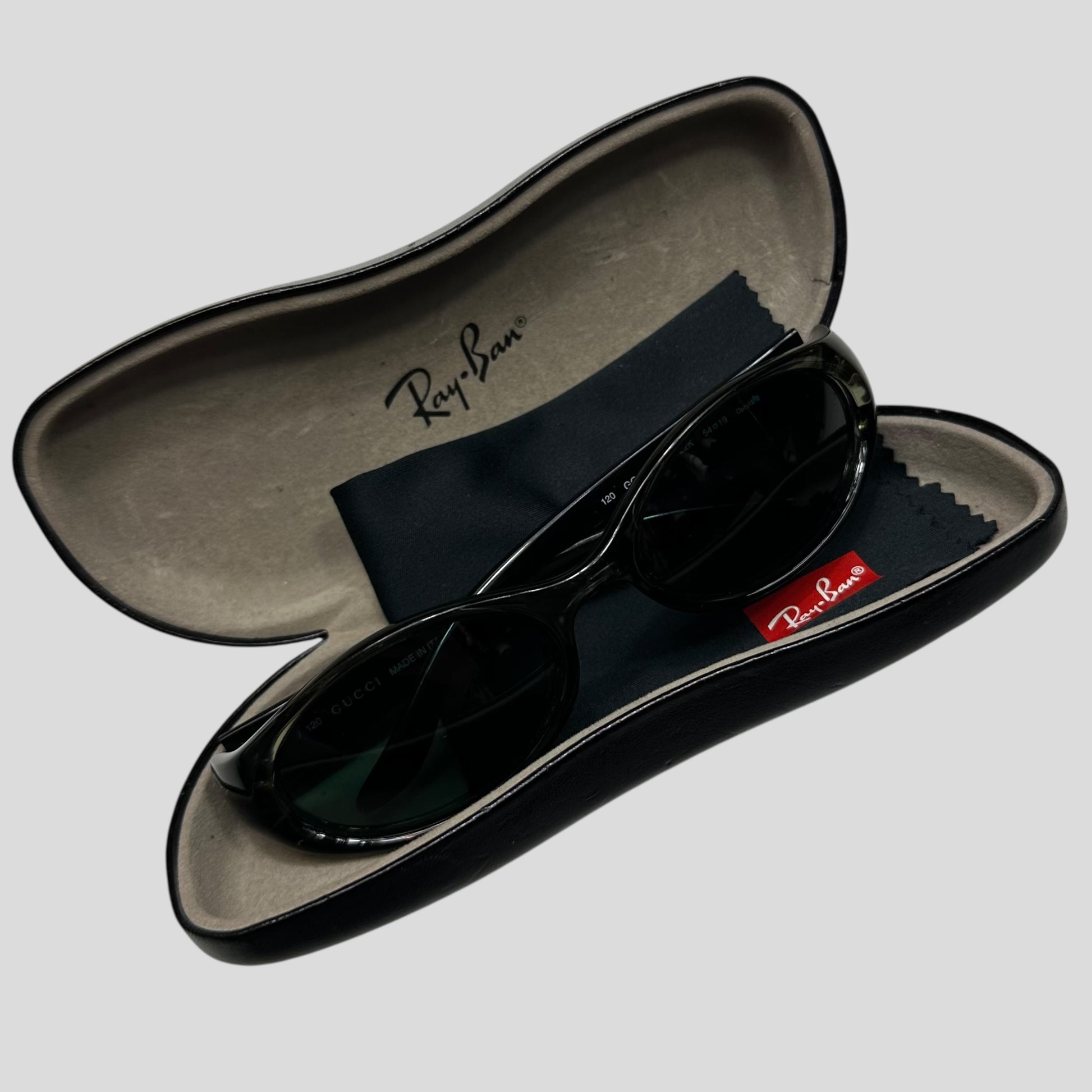 Excellent condition sent in replacement authentic Raybans leather case with lens wipe.