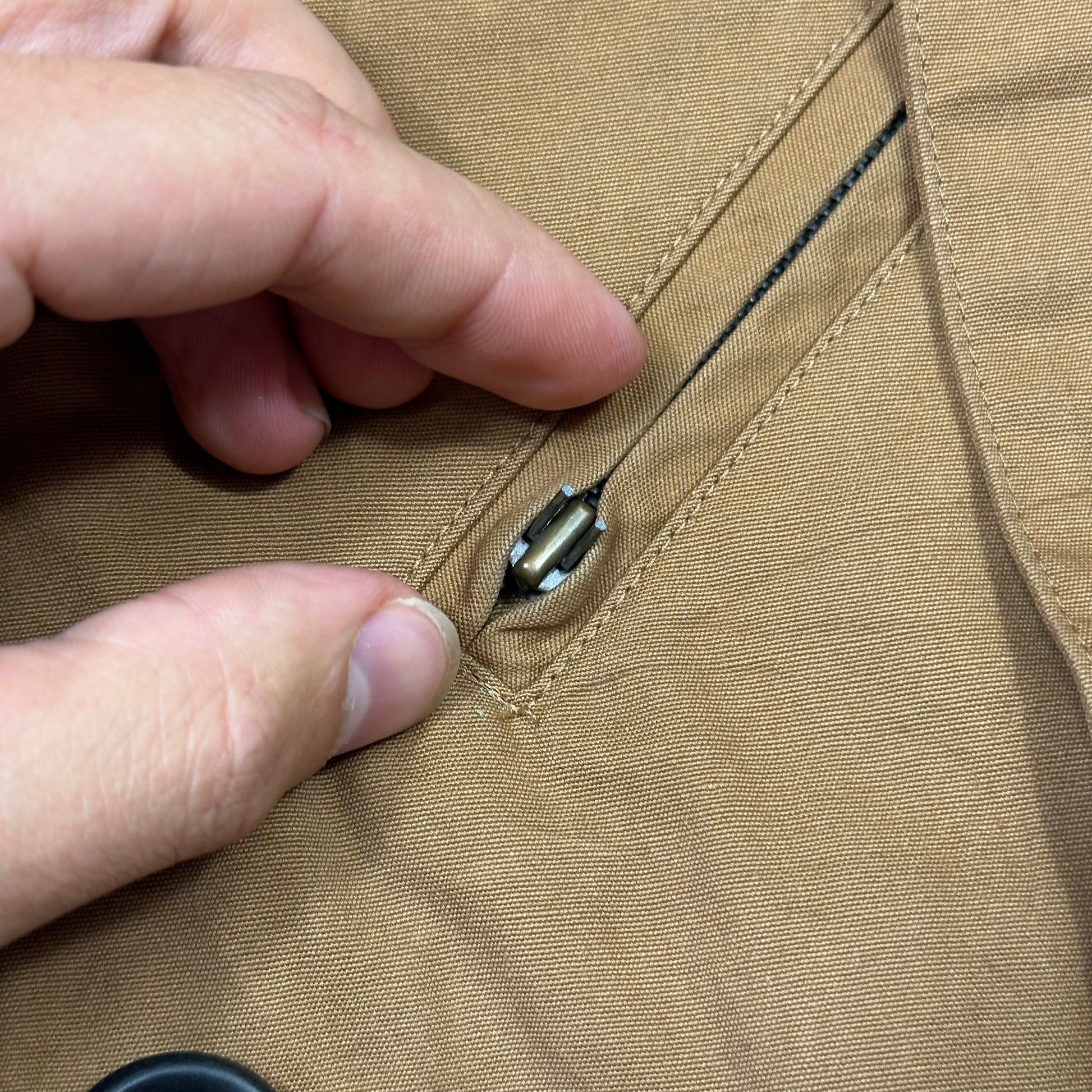Good vintage condition, feint mark on the back and 1 pocket zip pull is missing zip still works.