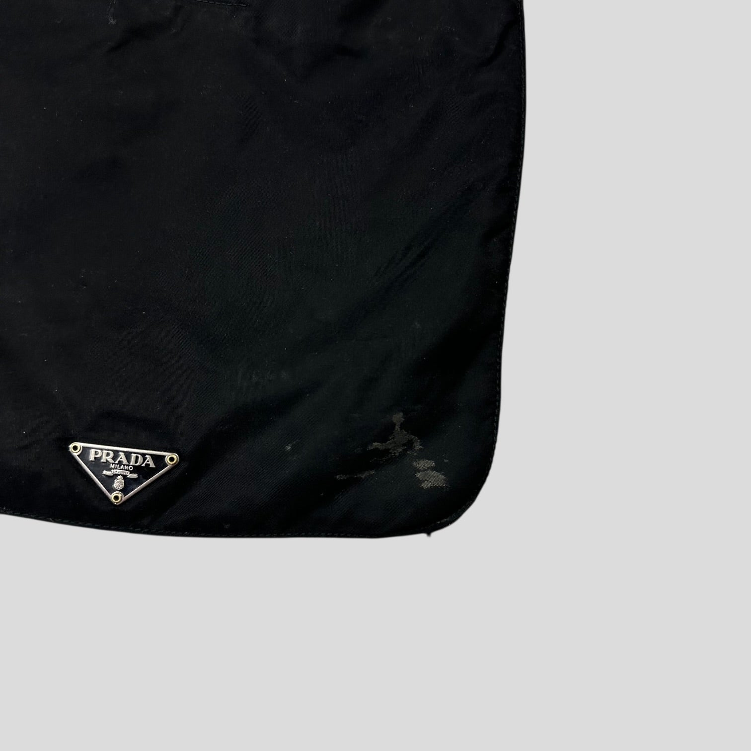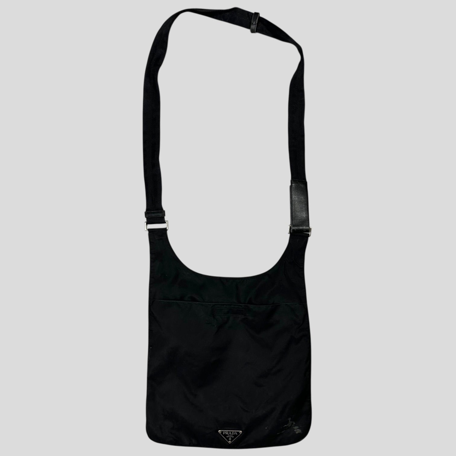 Rare 2000’s Prada mainline triangle plaque logo crossbody bag, unique shape and style that can expand due to a twin seam around the edge, multipocket design with lots of storage, leather detailing adjustable strap.
