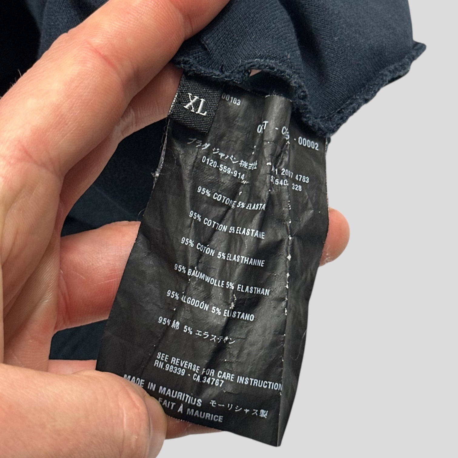 Prada Sport 2007 Navy cotton polo shirt, contrasting red panel under the buttons with repeating rubber Prada Sport logo’s, metal Prada buttons.