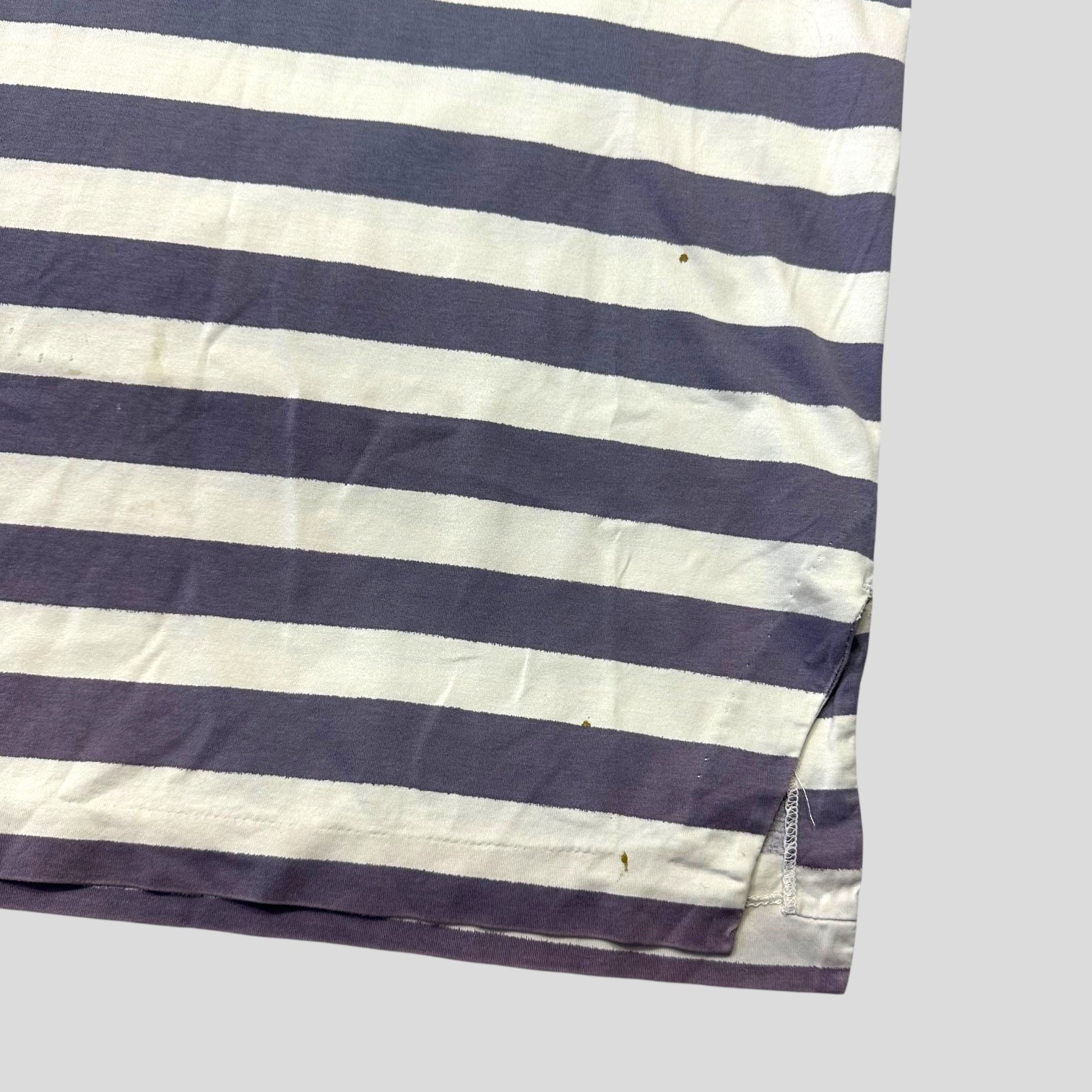 Extremely rare Stone Island Marina 1988 Striped shirt with metal buttons, arc spellout logo to chest, unique collar that can be buttoned all the way up to cover the neck, (note button is not missing it’s just on the other side of the collar as intended).