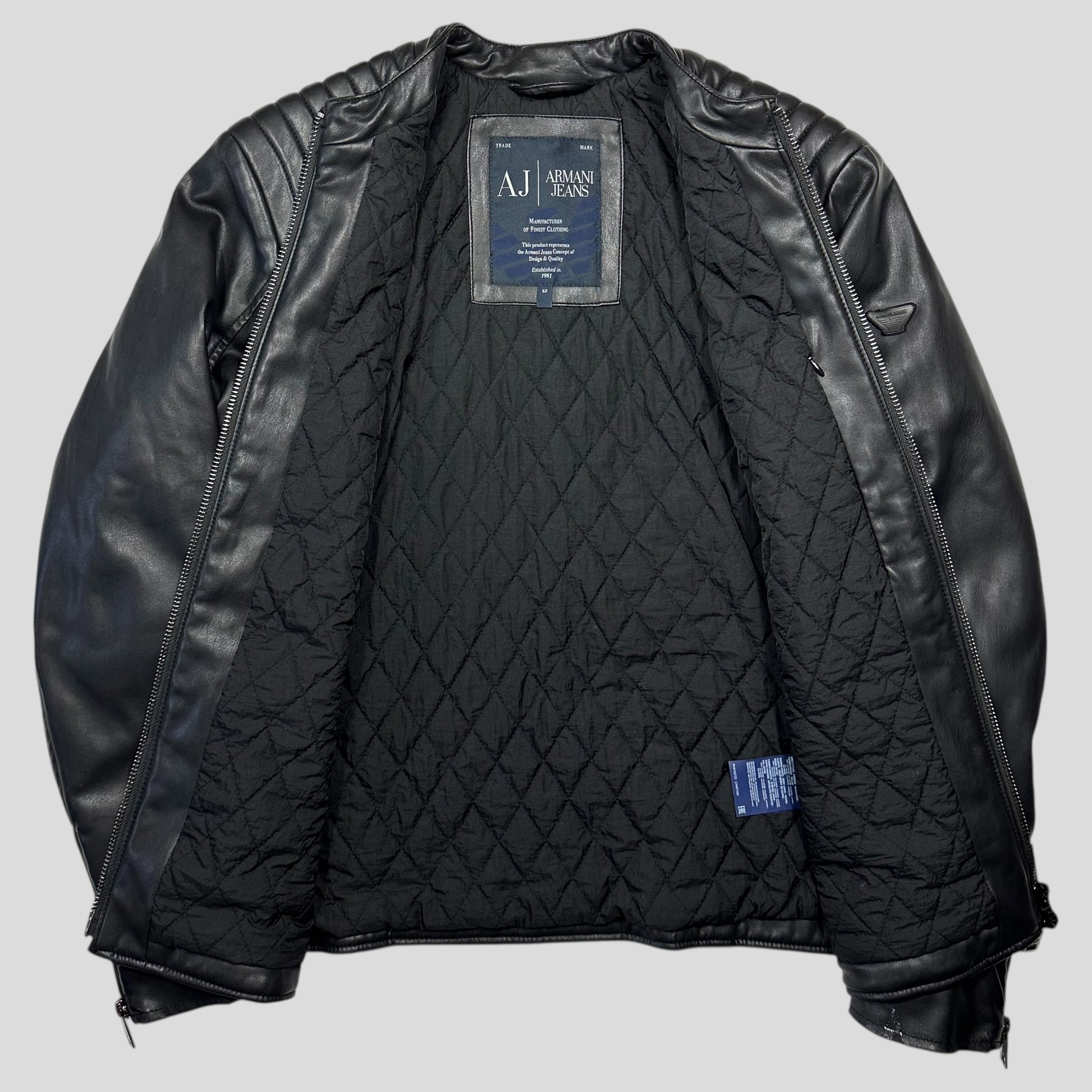Armani Jeans Faux Leather Padded Moto Biker Jacket - M/L