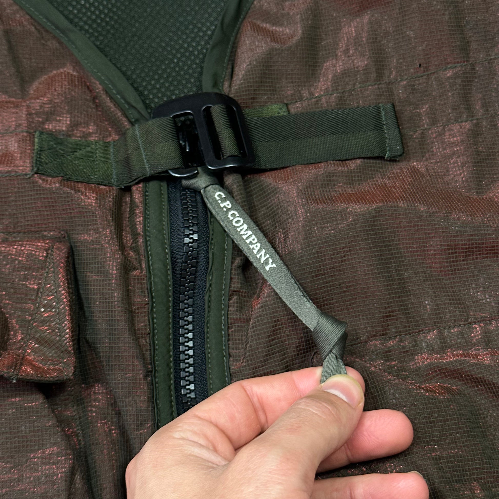 Incredible material from CP Company, prismatic ripstop nylon that shimmers and changes shades in the light.