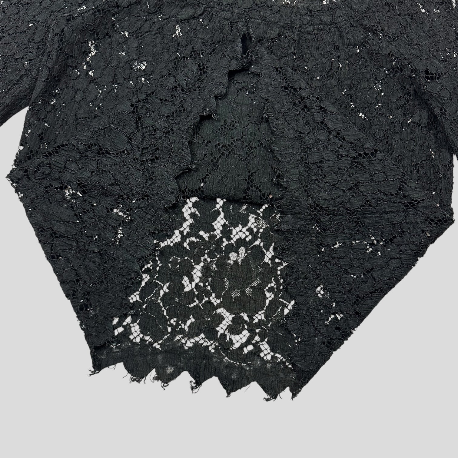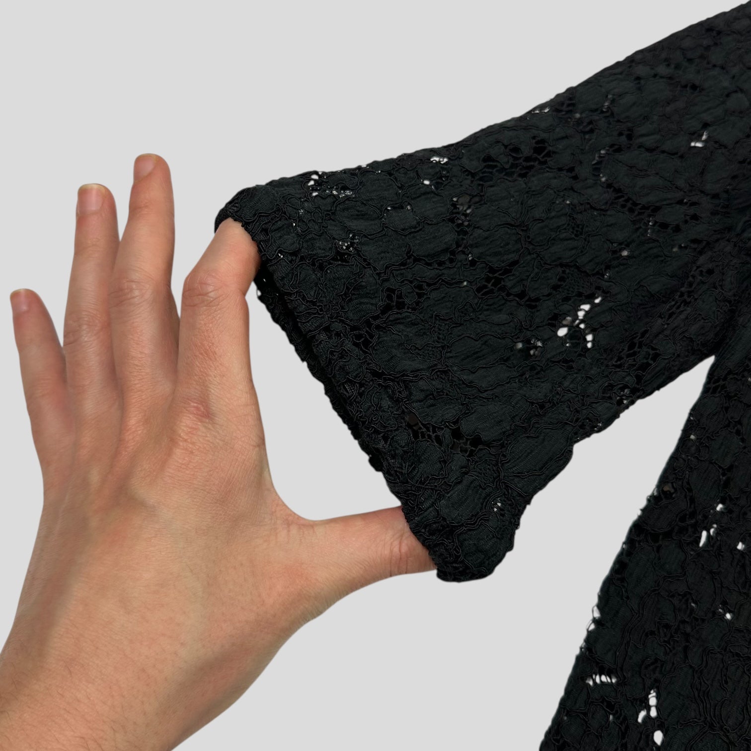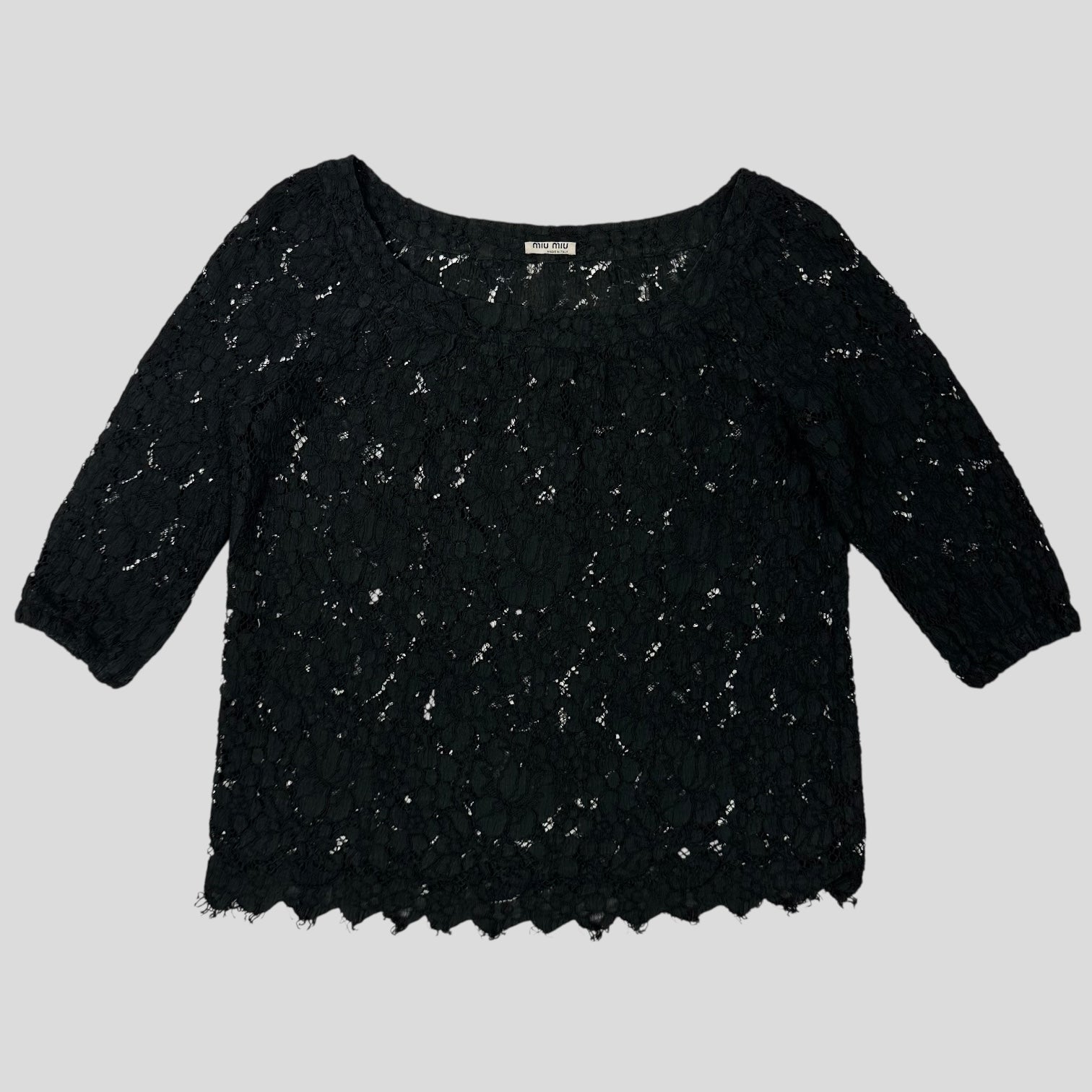 2000’s Miu Miu black lace top, Broderie lace flower design, elasticated cuffs 3/4 length arms.