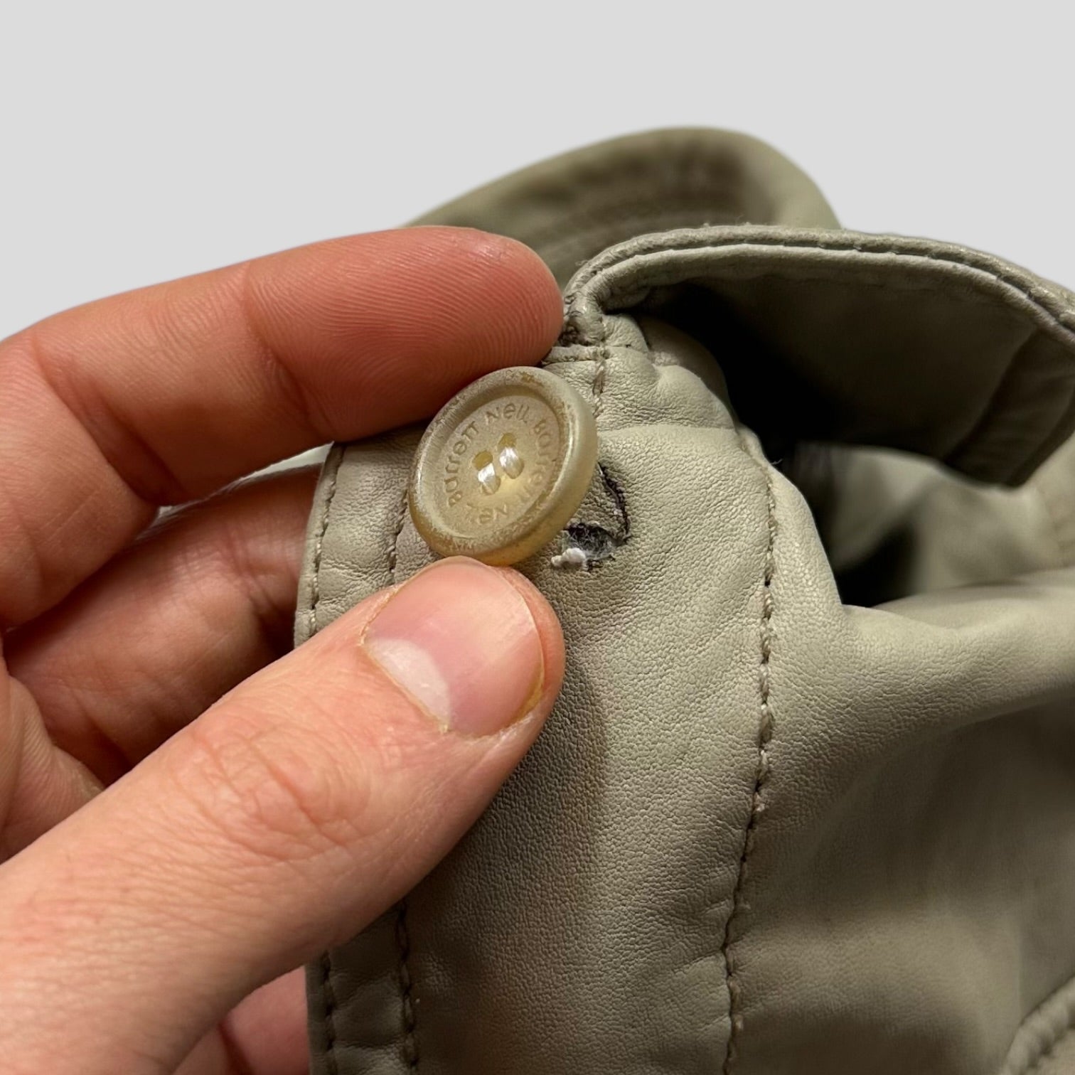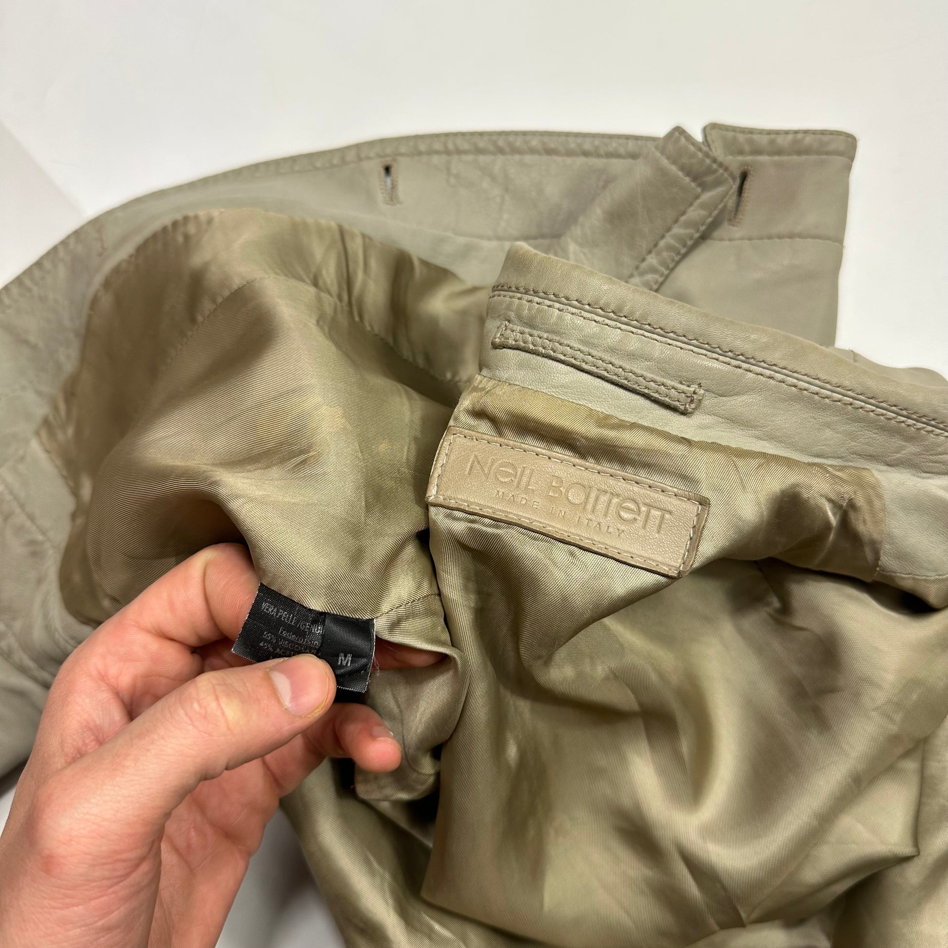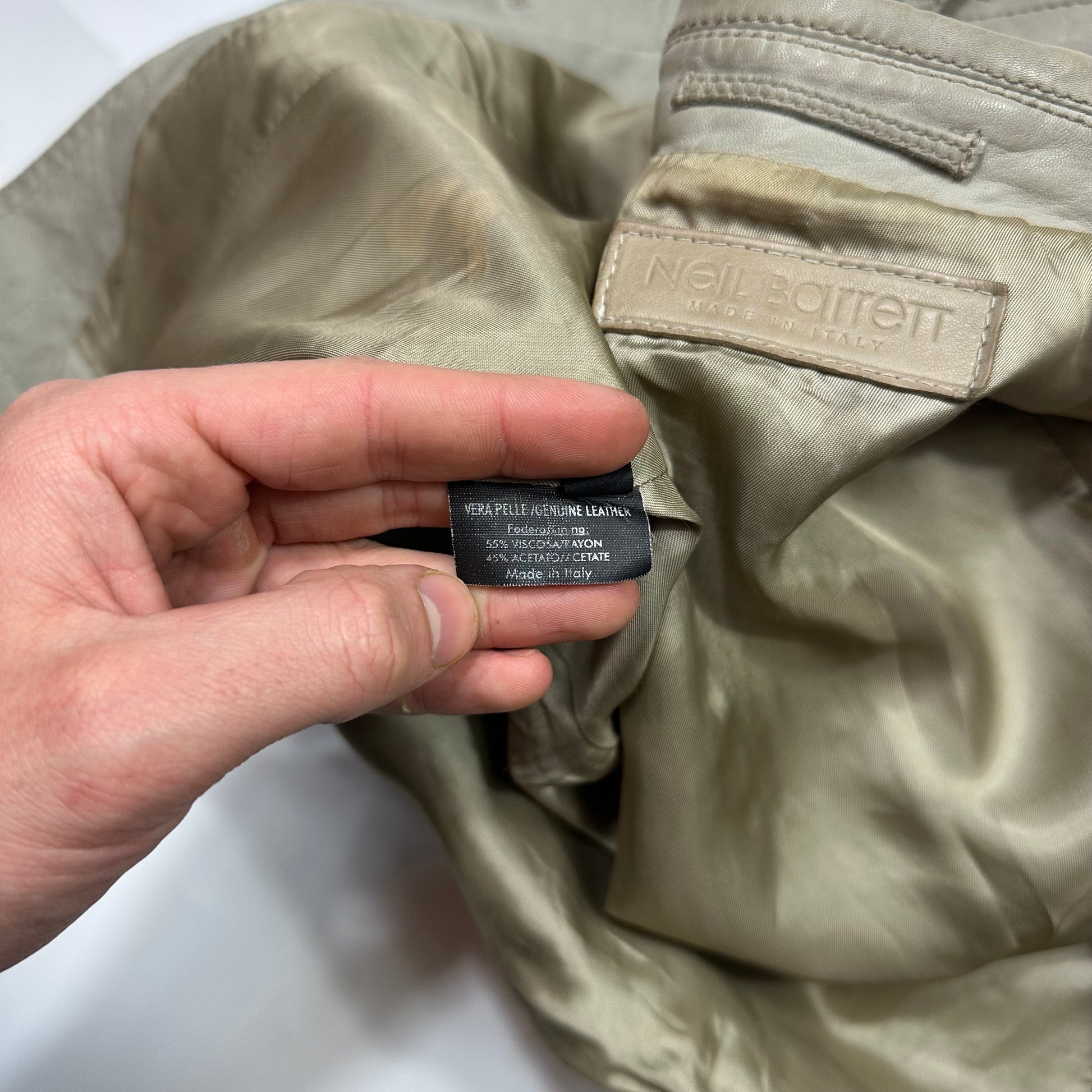 Extremely rare and sought after collectible Neil Barrett multipocket leather moto riders jacket in pale grey - cream, as worn by Brad Pitt on the red carpet for the 2005 Mr and Mrs Smith Premiere.