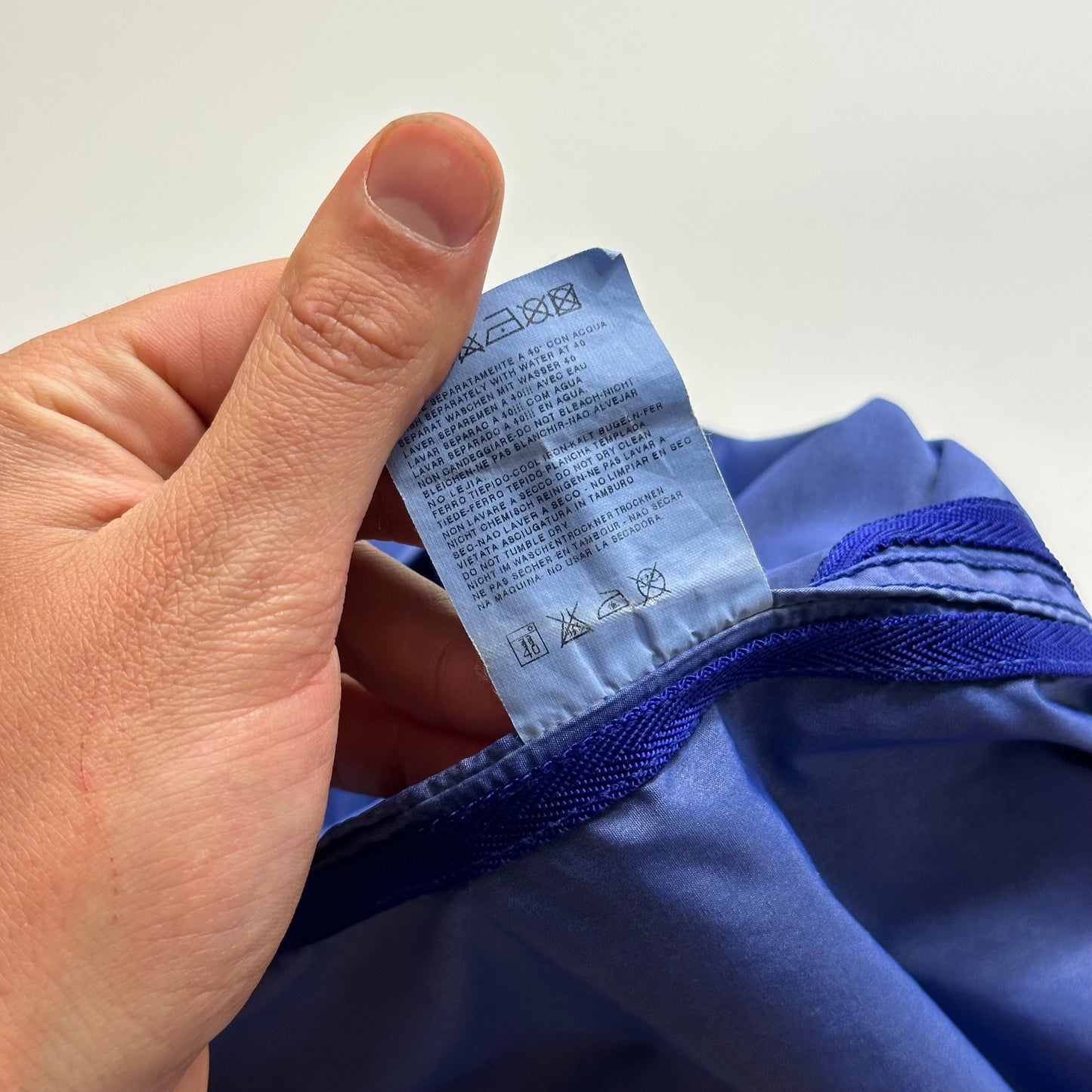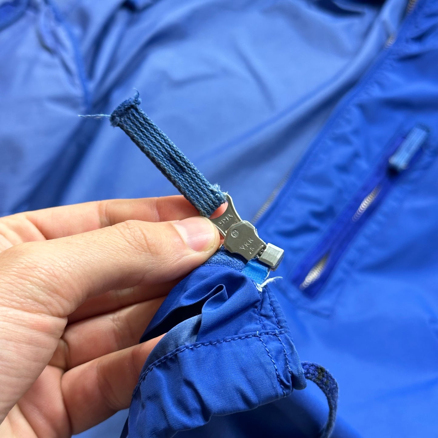 Very rare spalmatura Spring Summer 2008 nylon shimmer jacket, based on the iconic 80’s ‘No Seasons’ jacket, beautiful royal blue colour with exposed chest pockets and metal YKK zippers, balaclava style full face hood, adjustable fit via drawstrings at hem and hood.