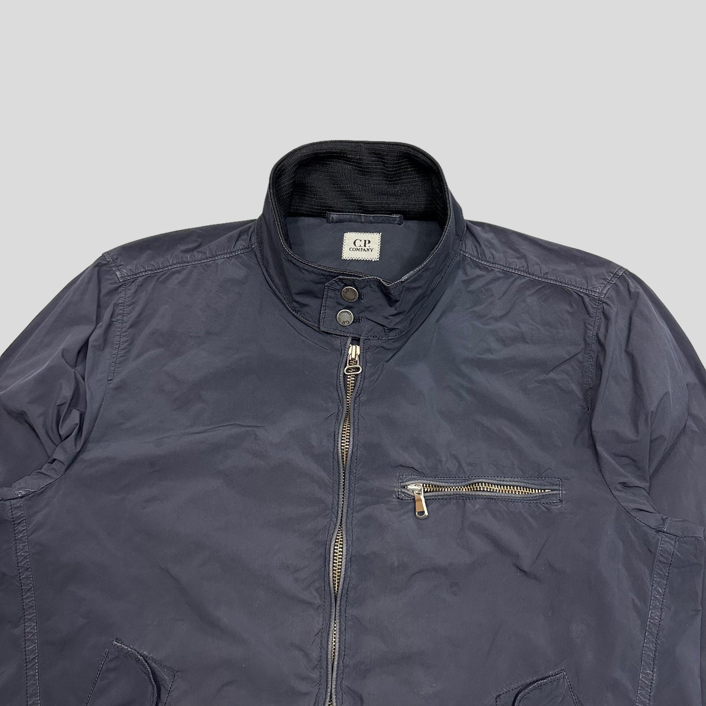 CP Company 2000’s Nylon Lightweight Track Jacket / Bomber Jacket, pockets to chest and waist and inside button pocket, cp branded buttons, navy nylon material with lined neck.
