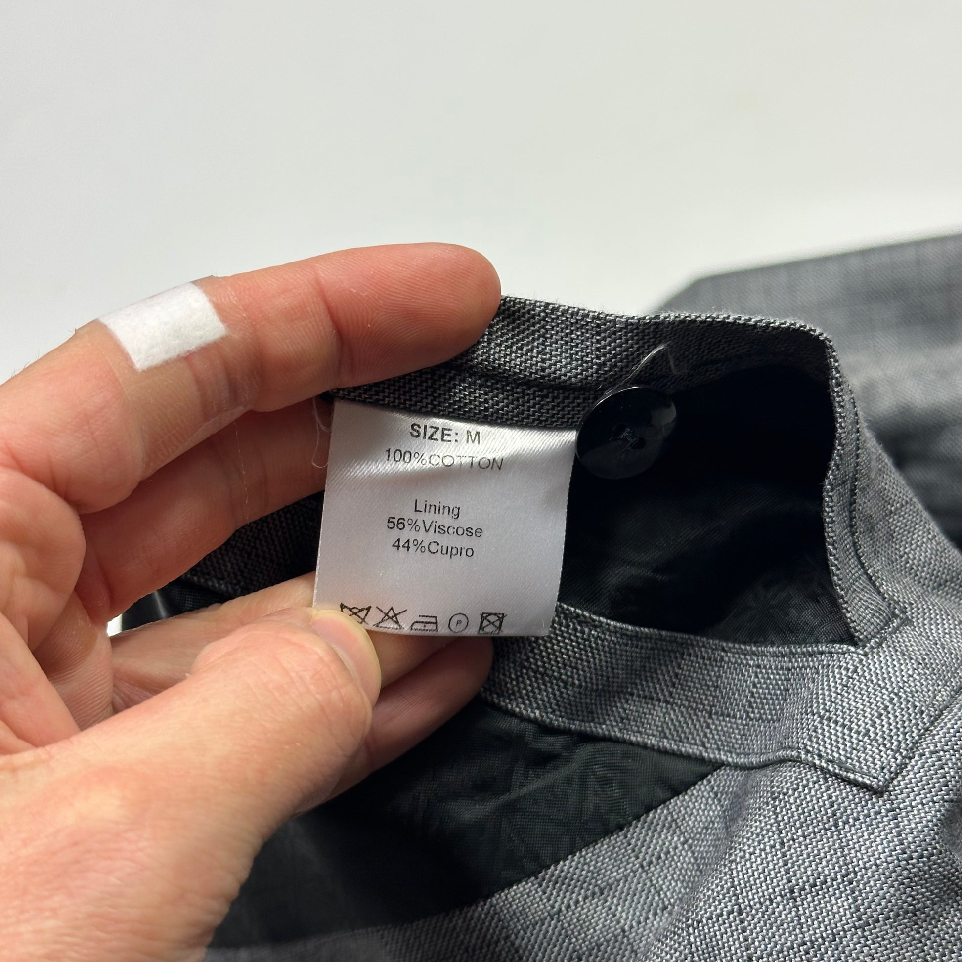Beautiful Autumn Winter 2007 grey cotton ripstop grid pattern from a brilliant lesser known London designer brand, lovely boxy cut, unique asymetric button finished panel, made in Italy chunky metal dual zippers, unique western style central button flap to back.