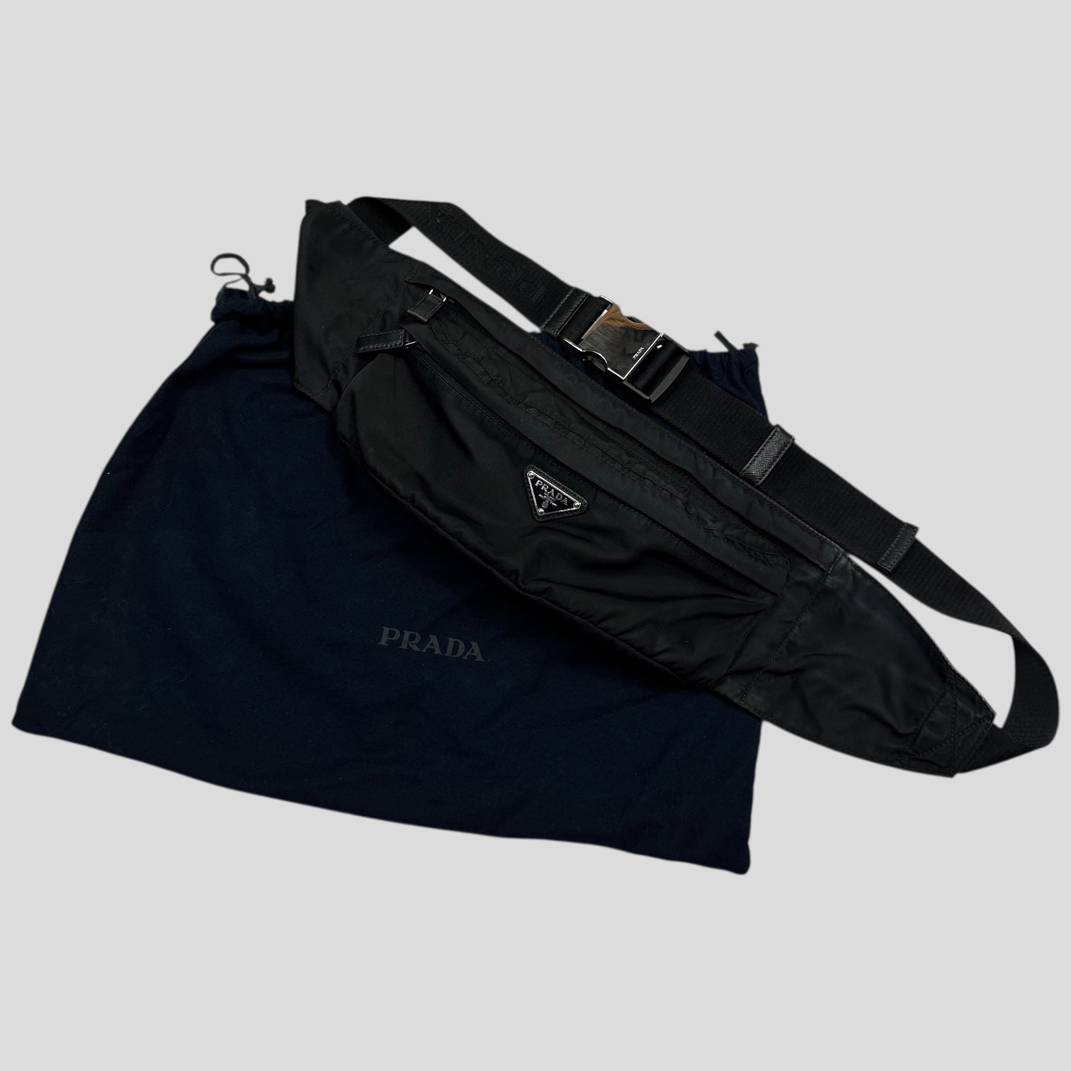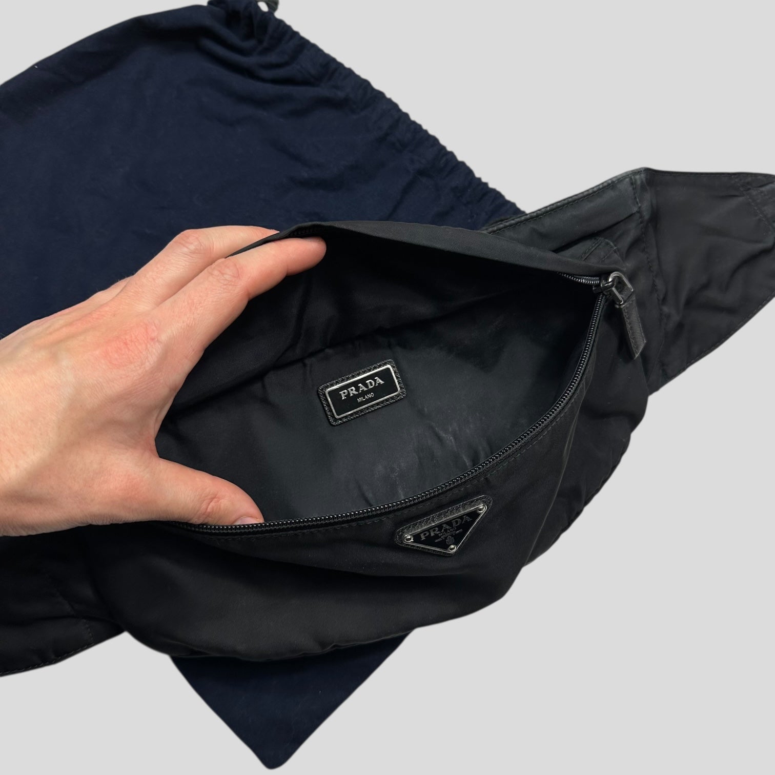 Prada Milano Plaque Logo Black Nylon Crossbody Beltbag