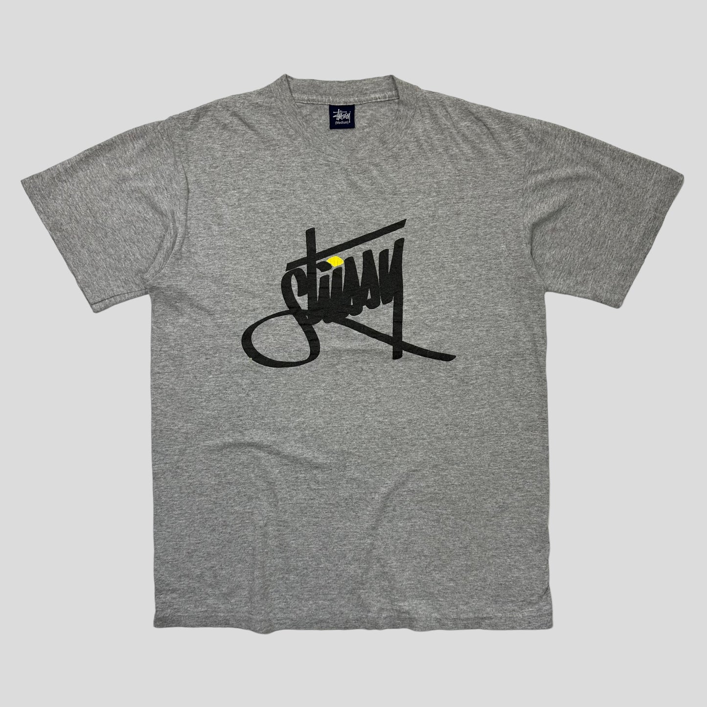 Early 2000’s banger, simple centre script logo with yellow accent on the i.