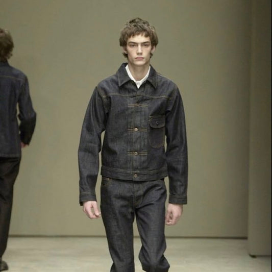 Miu Miu 2001 Runway Denim Fiammoto Pleated Work Jacket - S/M