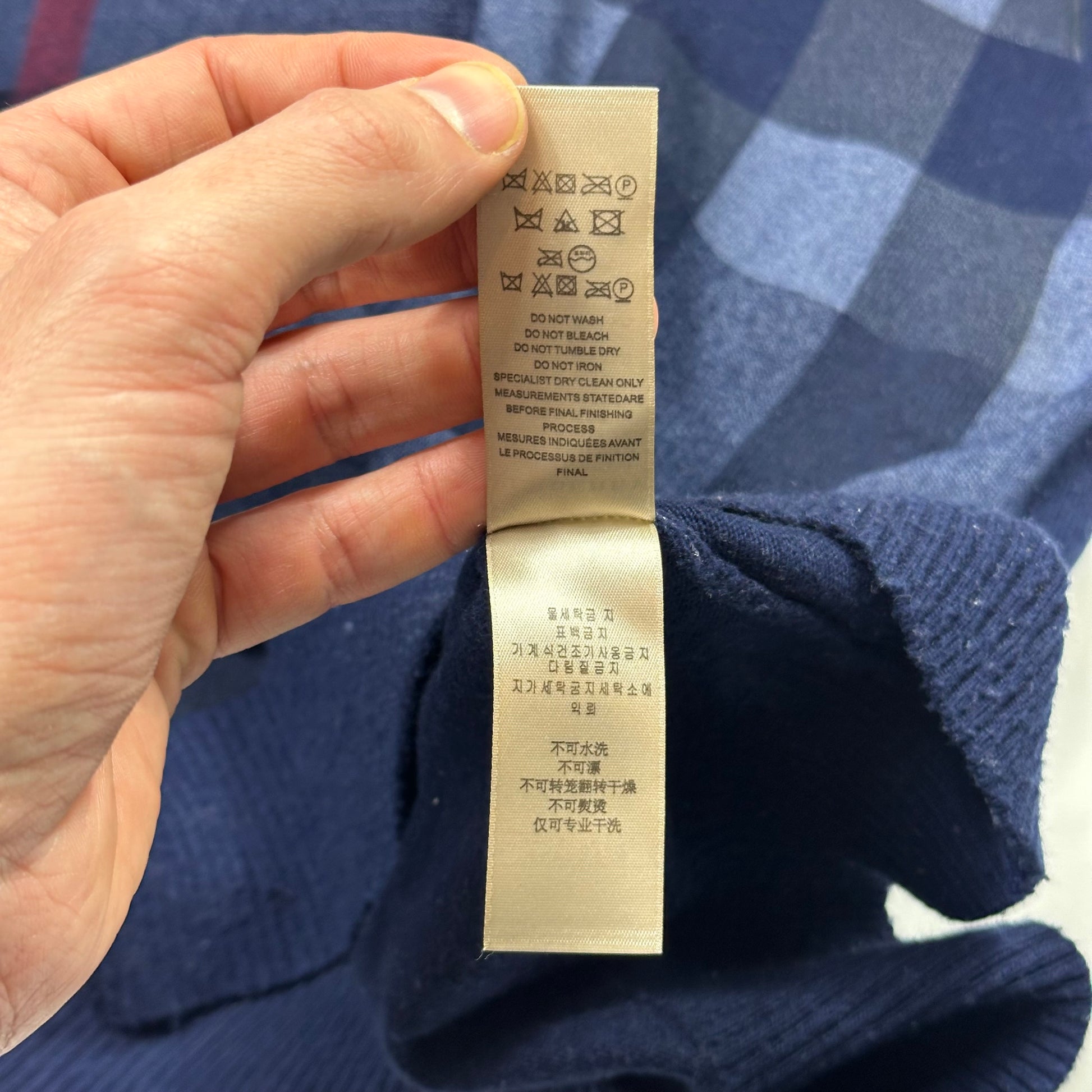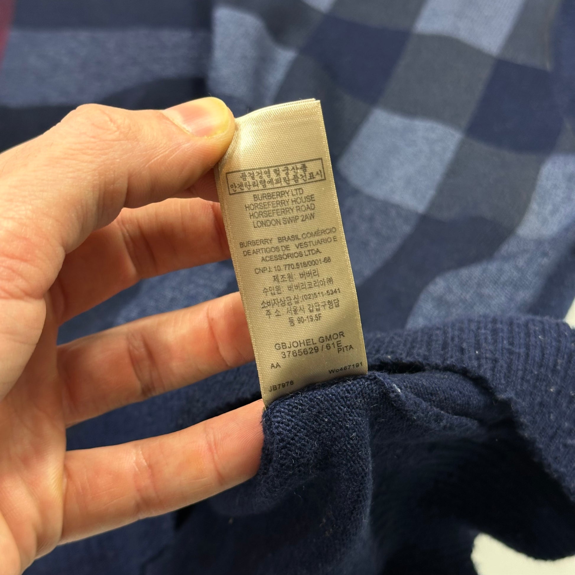 Beautiful navy Burberry Brit made in Scotland knitted sweatshirt, soft blend of merino wool & cashmere, nova check design to front.