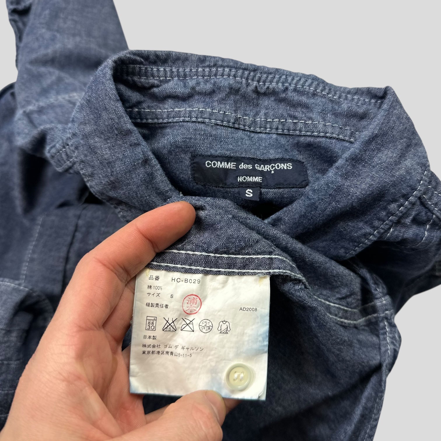 CDG Homme 2008 short sleeve denim like cotton shirt, pleated detailing to the front, made in Japan.