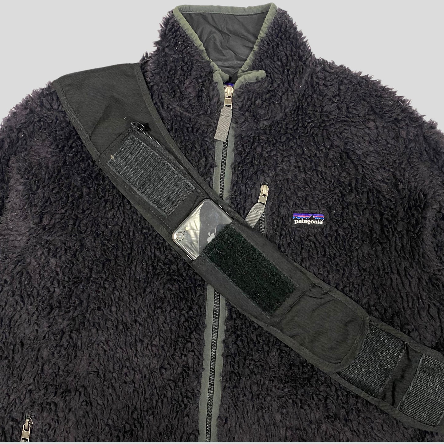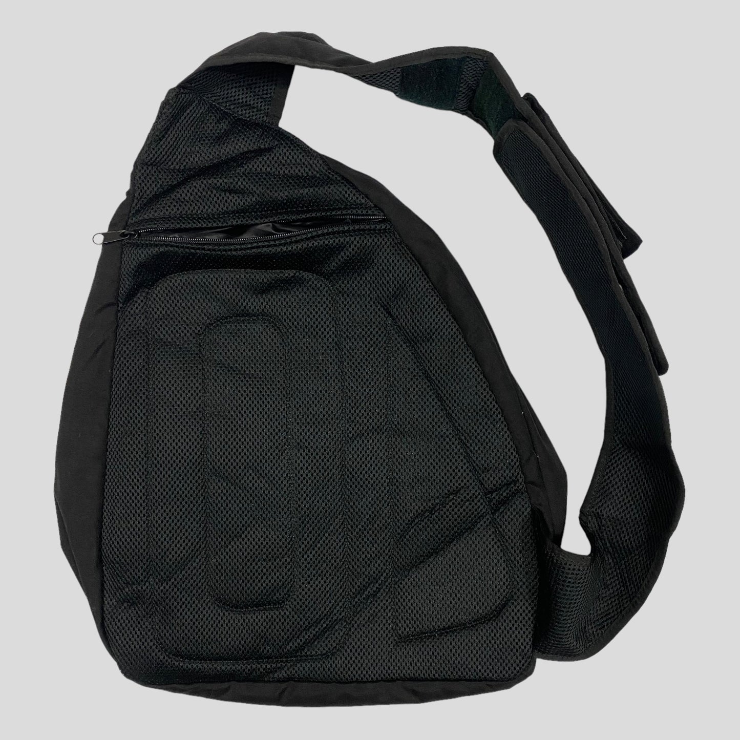 Early 2000’s IS Island slingbag, big comfy velcro straps, large multipocket storage compartments, removable phone slot to strap with additional zip slot for cards or cash.