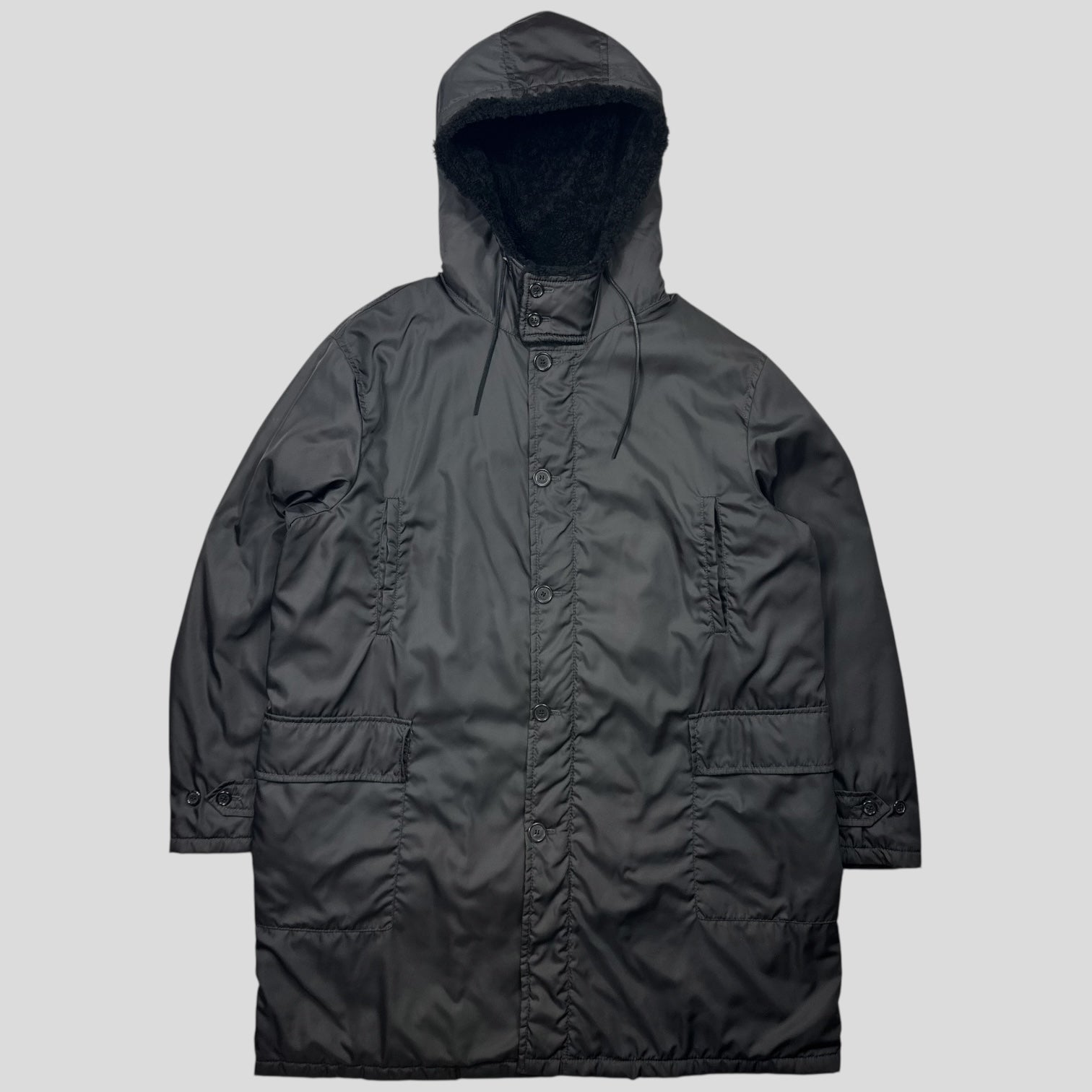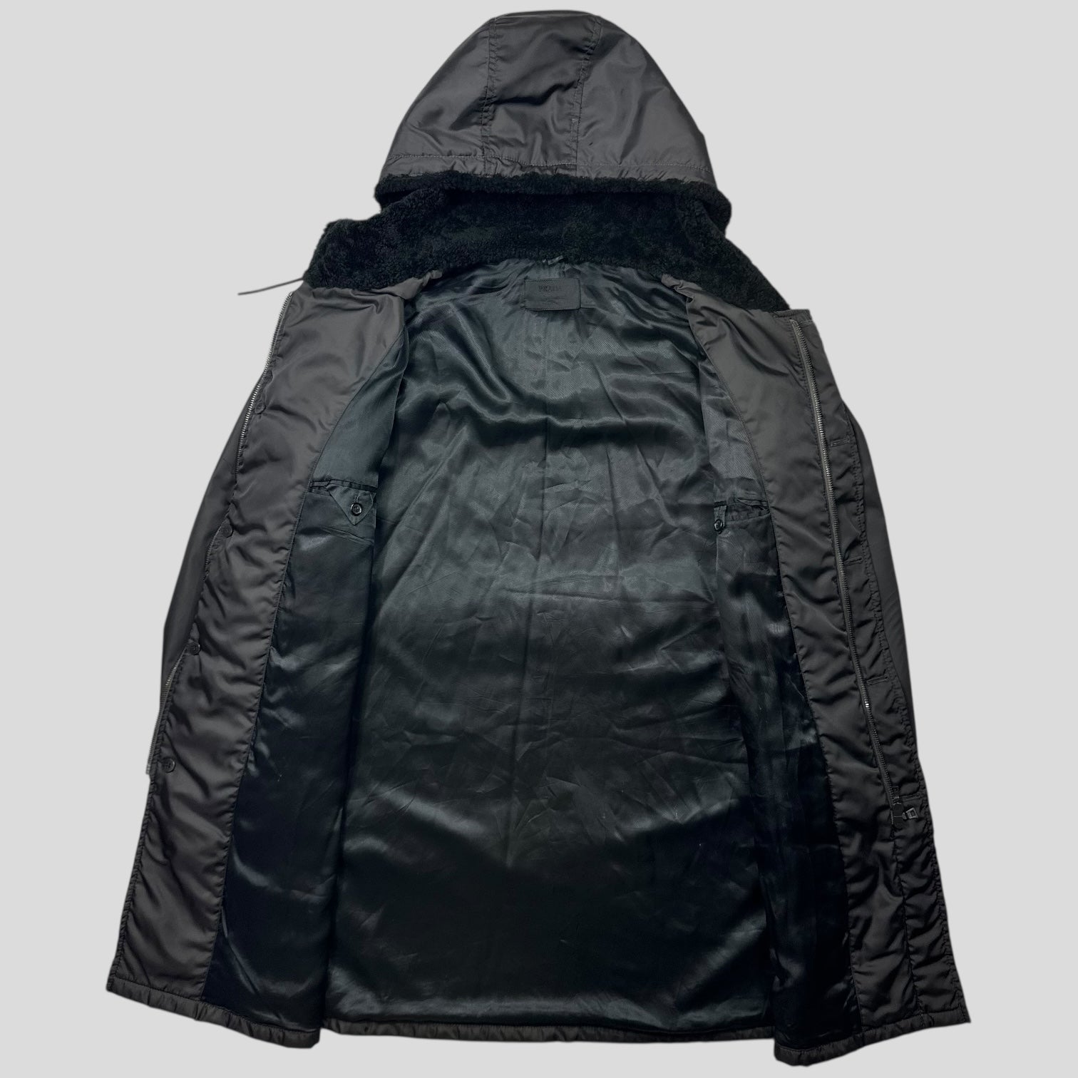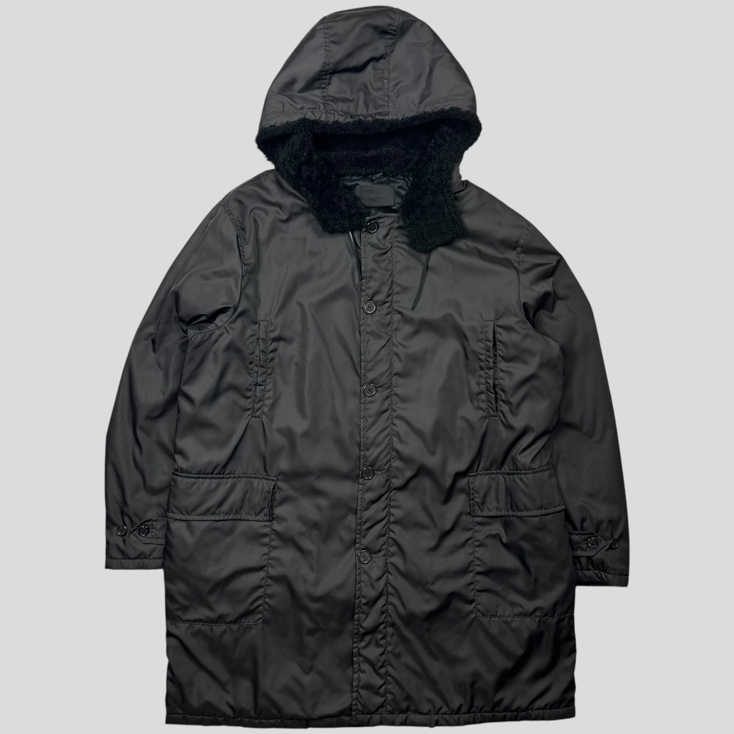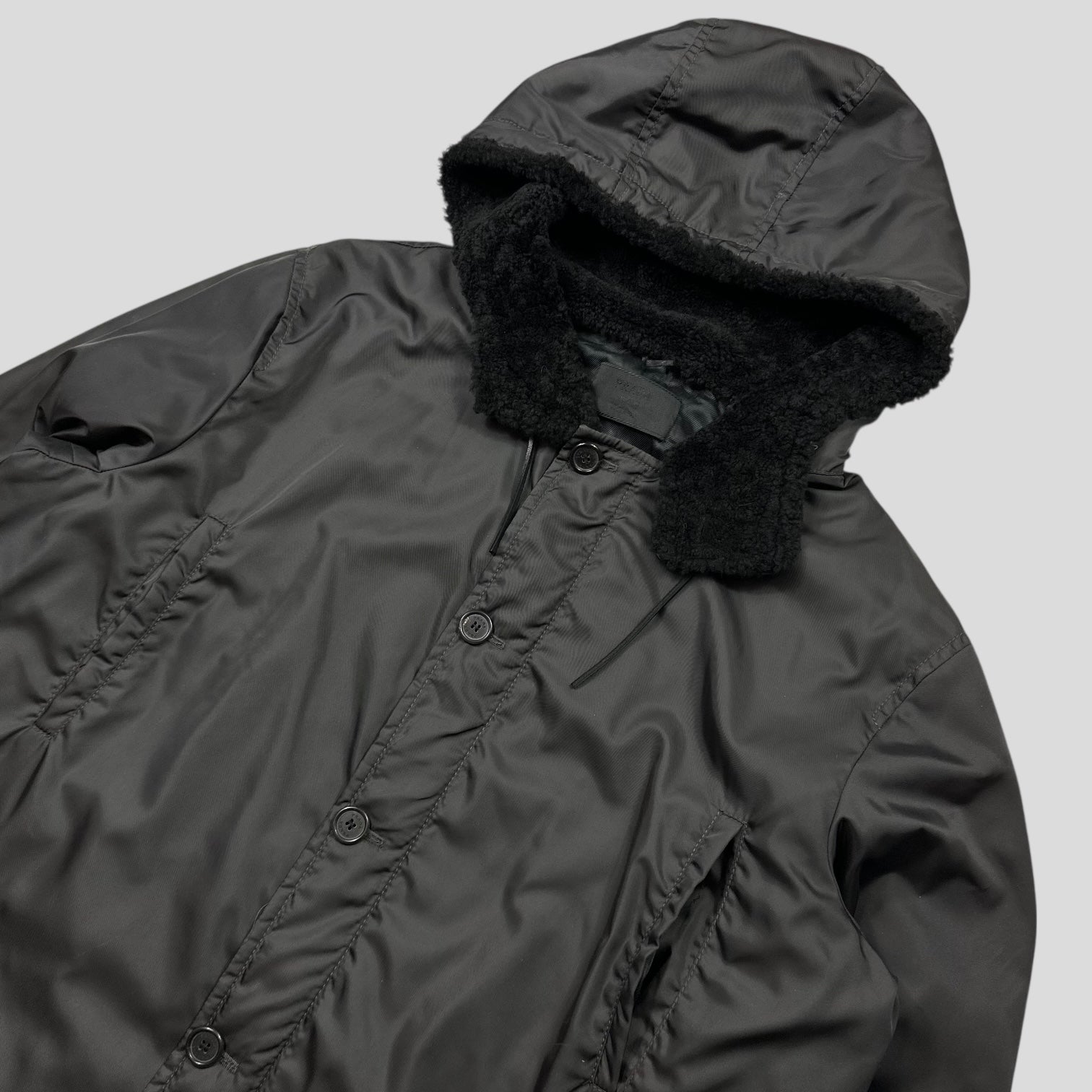 Prada Milano 00’s Sherpa Hood Padded Nylon Canvas Multipocket Coat - XXL