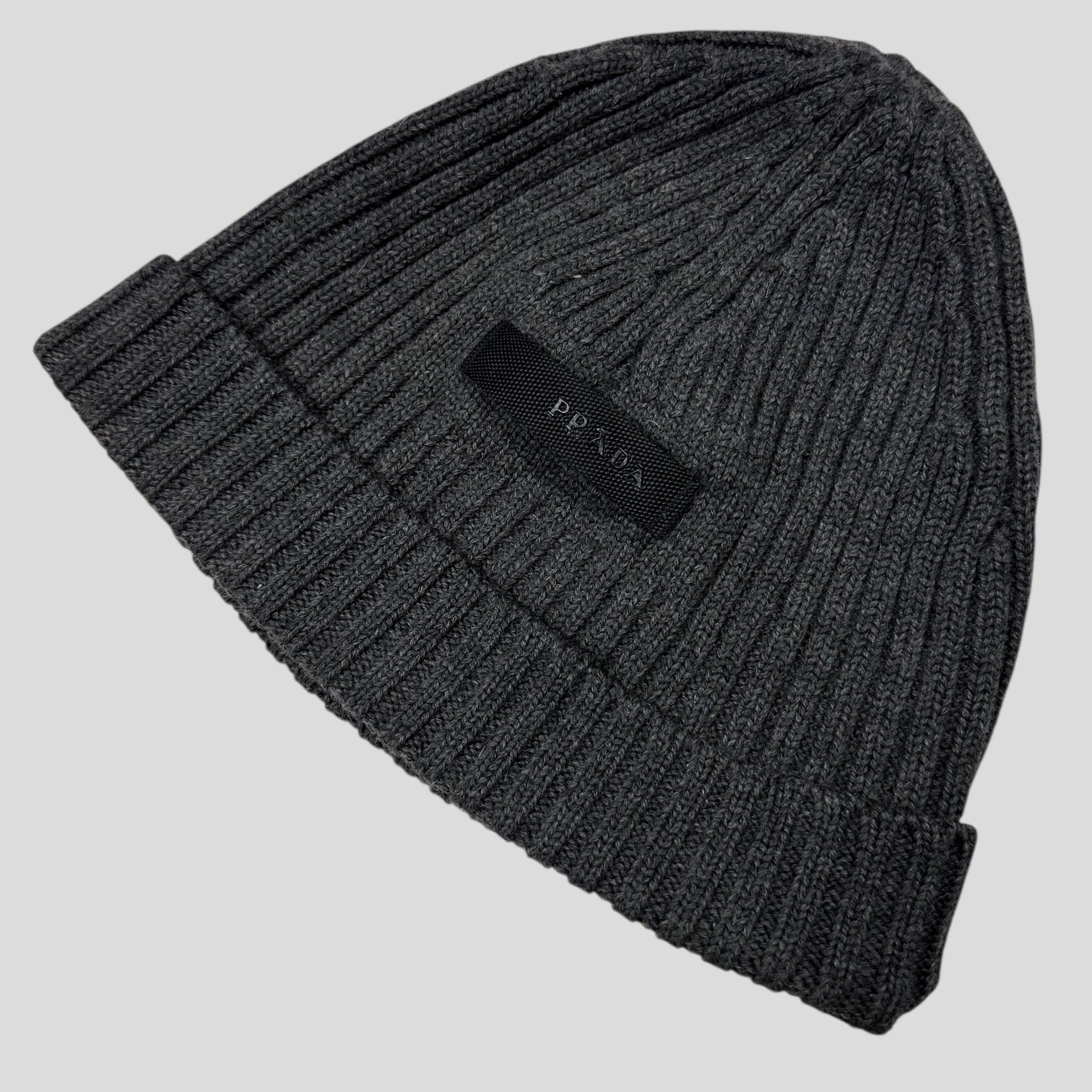 Prada Sport 2007 Carbon Logo Grey Wool Beanie - OS