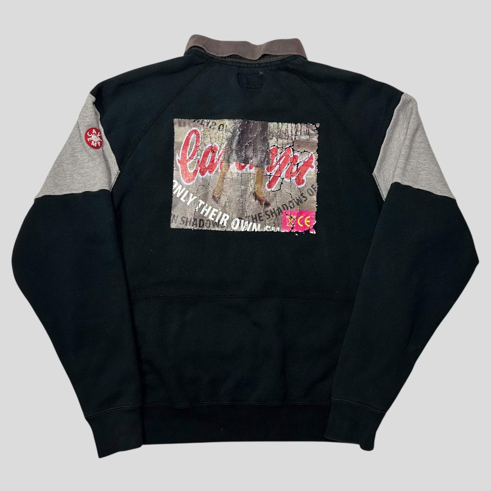 Cav Empt spellout rugby polo collared sweatshirt, embroidered logo to front, sleeve logo, screen print on the back, as famously worn by Skepta.