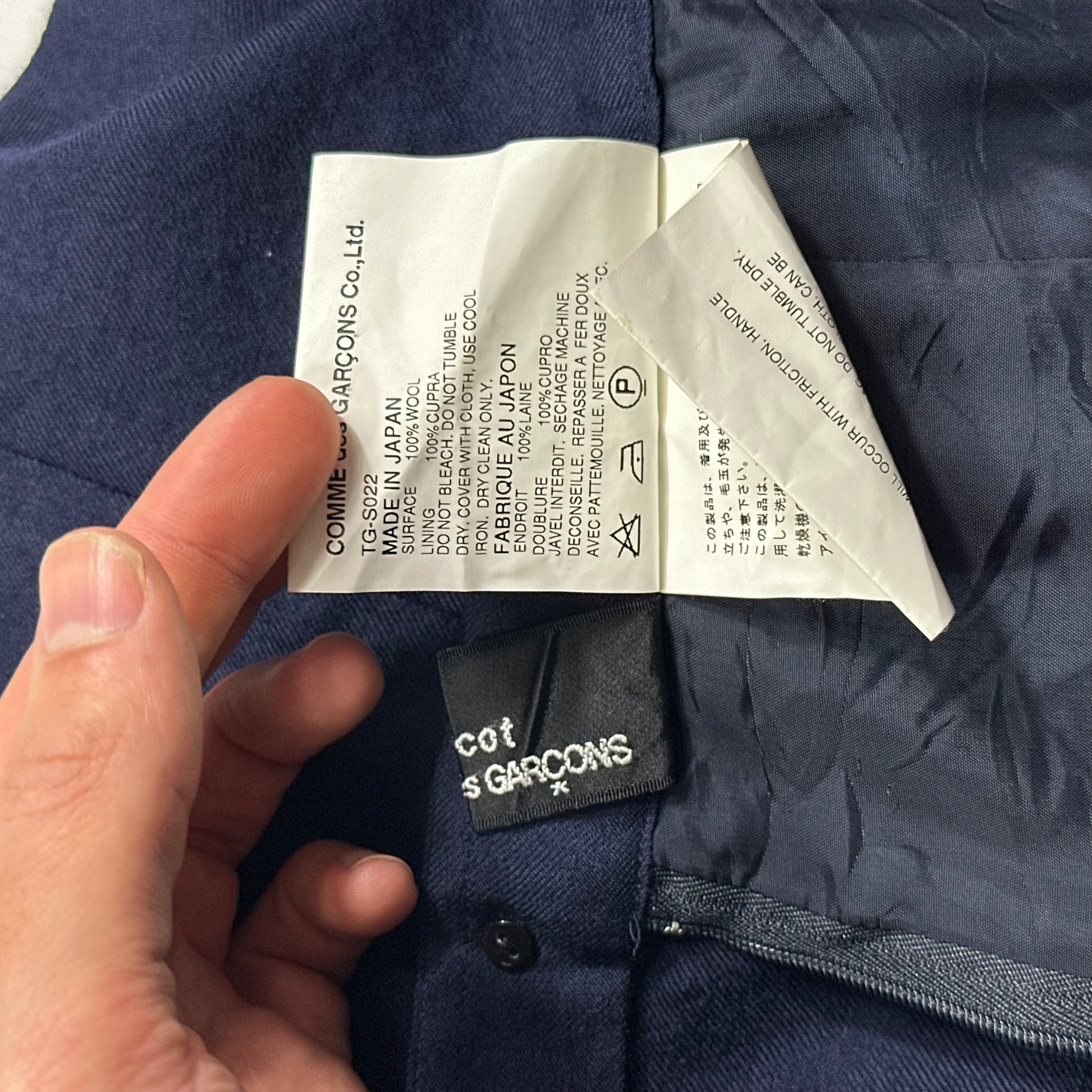 Lovely blue wool CDG Tricot A-line midi skirt, zip and button waist, silky rayon cupro lining, nice subtle panelling, Made in Japan.