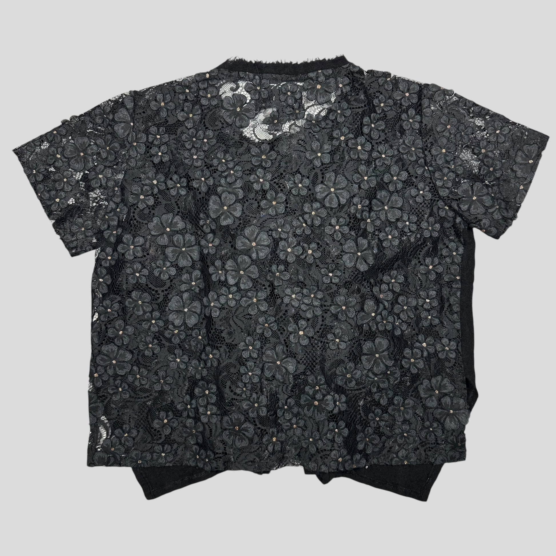 Comme Des Garçons 00’s Ruffled Sheer Panelled Floral Gothic Top - M