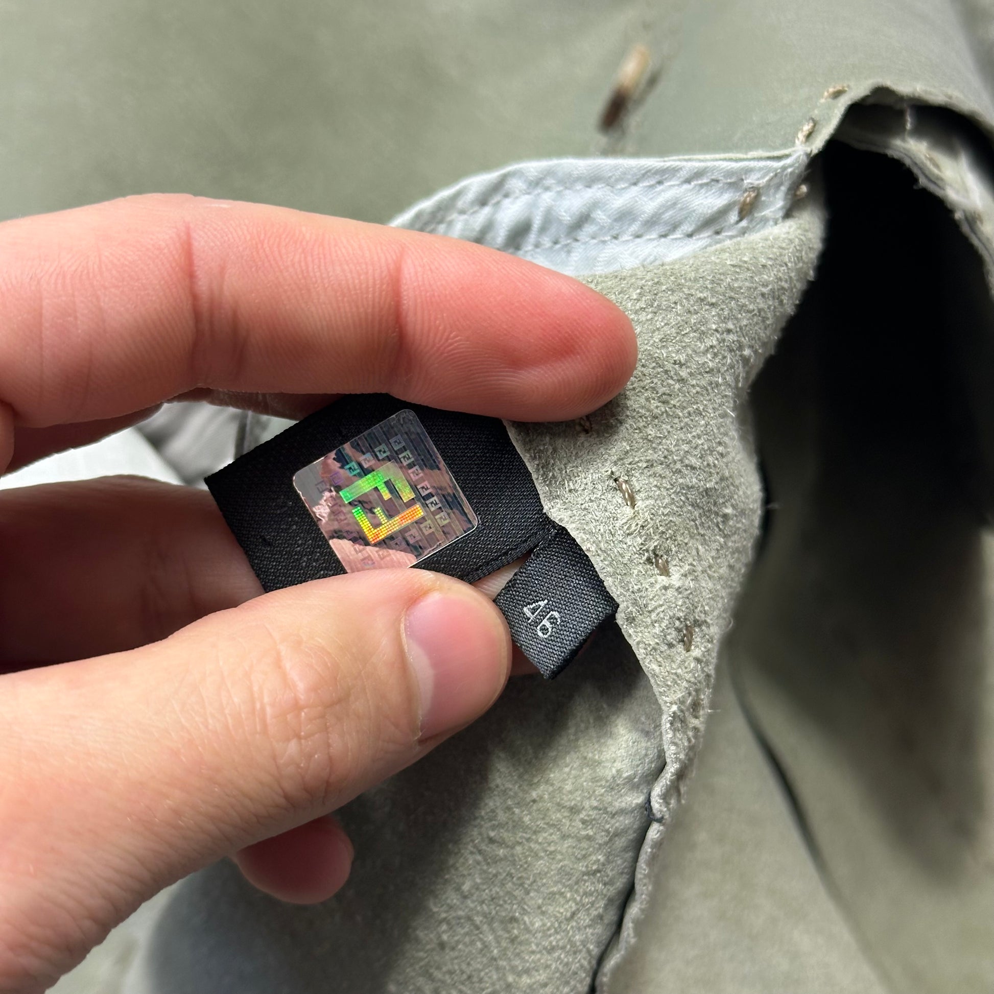 Size IT46, fits a men’s small or slim medium, fit is boxy, measures 21.25” pit to pit x 26.25” neck to hem x 26.25” shoulder to cuff.