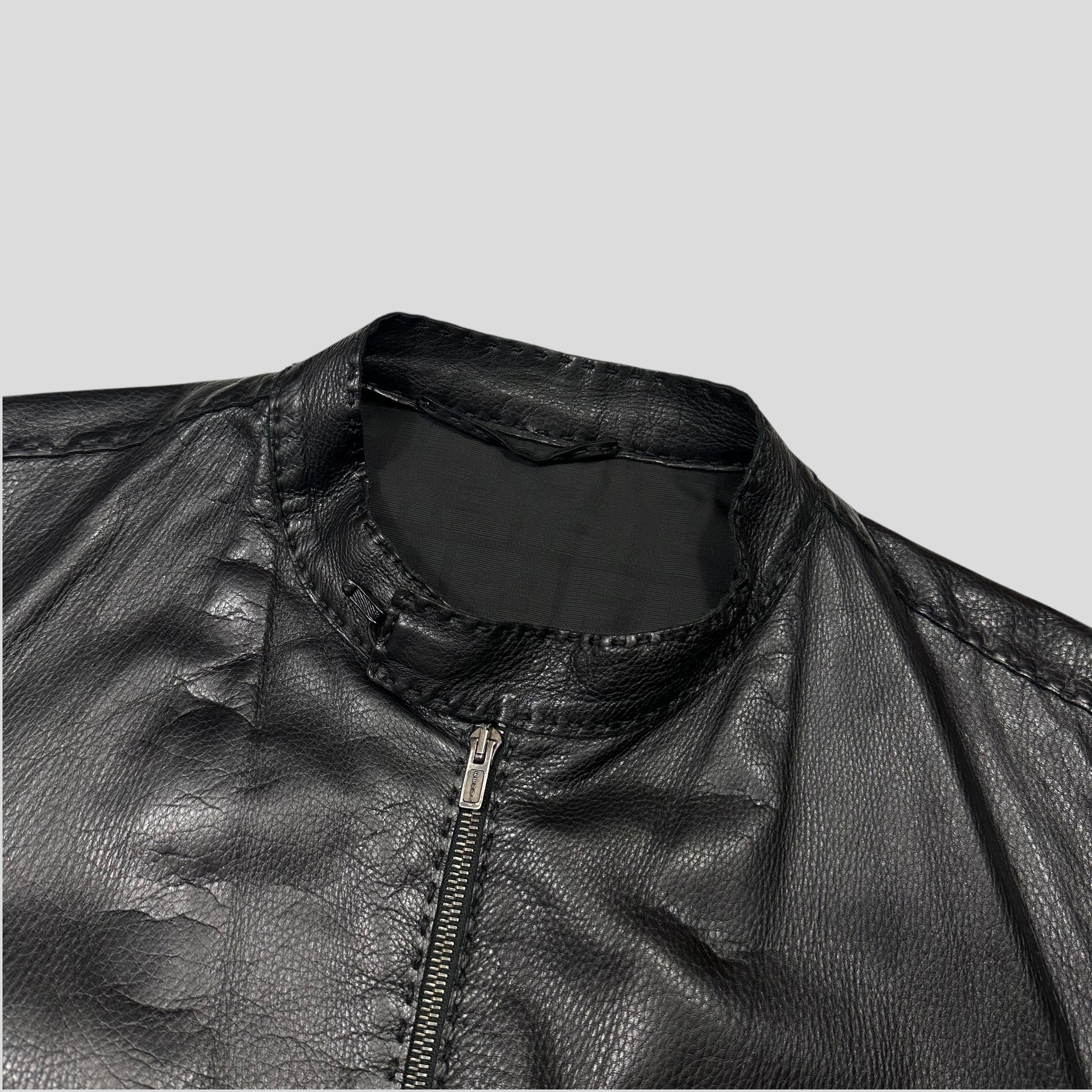 Fendi FF Textured Leather Exaggerated Stitch Moto Jacket - L