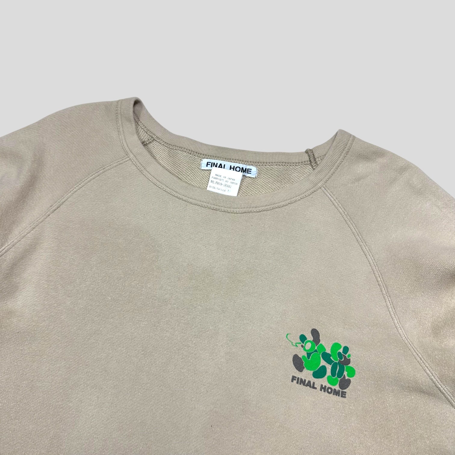 Final Home Spring Summer 2001 Cyber Bears graphic logo sweatshirt crewneck, sandy beige colourway, made in Japan.