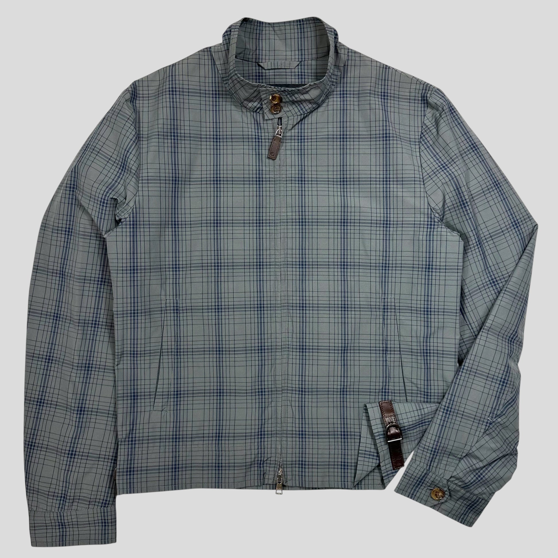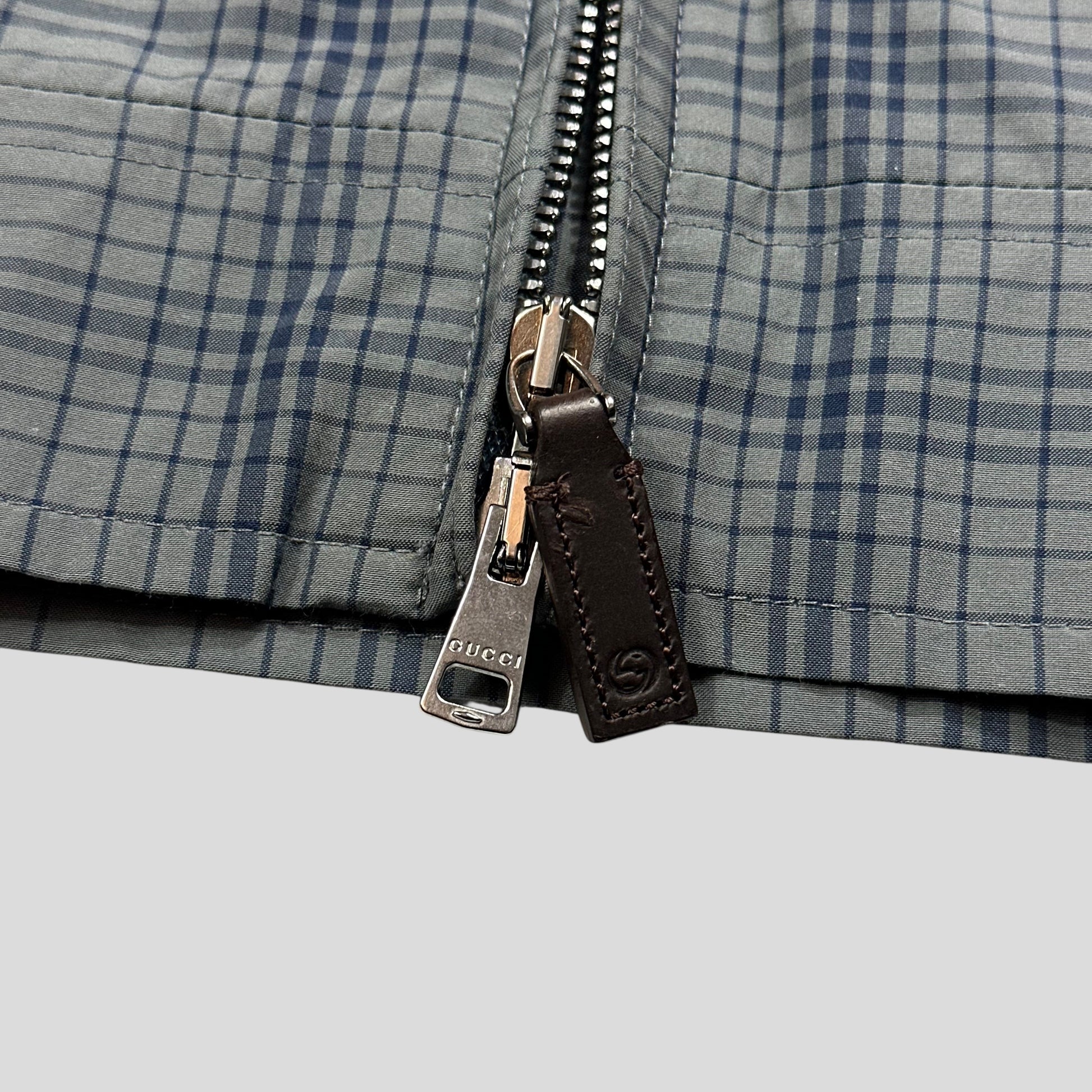 Gucci 2013 Grid Plaid Leather Horsebit Harrington Jacket - M
