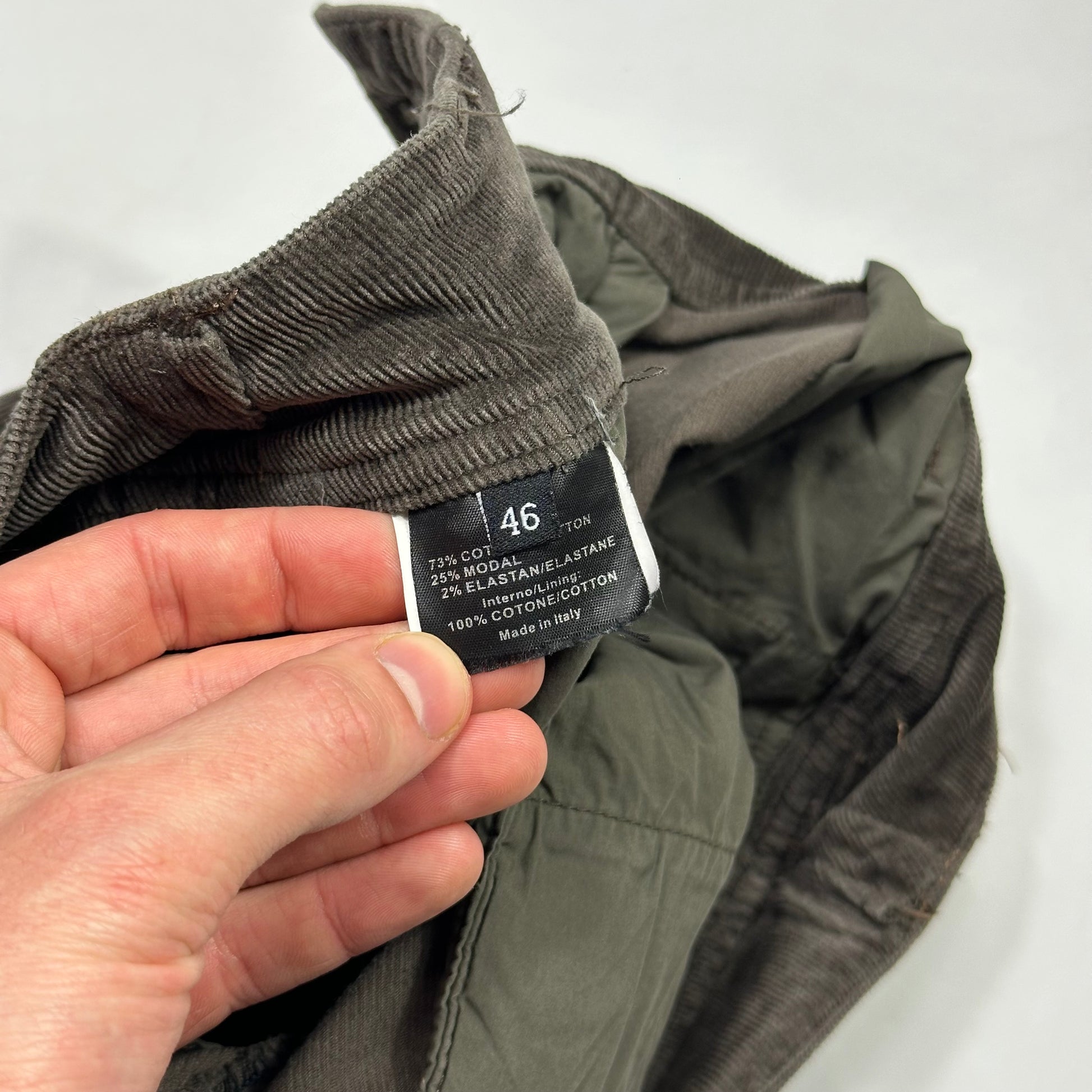 Size IT46, fit a men’s small / medium, measure 31” at the waist x 30” inner leg x 8” leg opening.