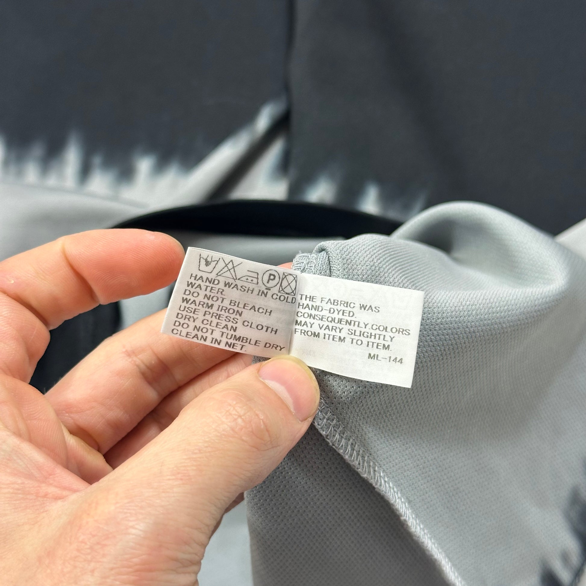 Very rare Hand-Dye technique black and grey Issey Miyake MEN line 2004 tee, sporty polyester material, lovely flame like gradient ombré print, made in Japan.