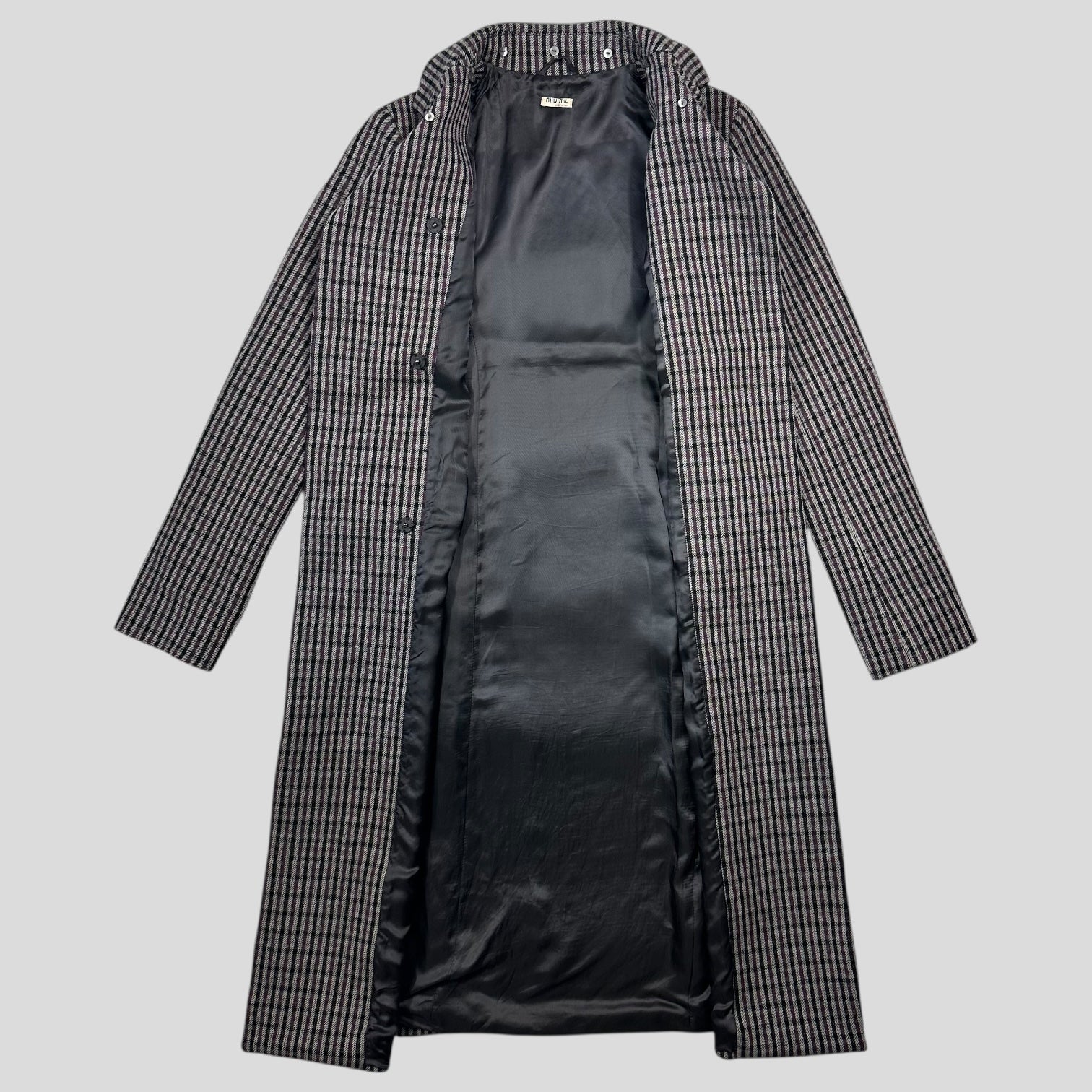 Miu Miu 00’s Virgin Wool + Removable Sheep Fur Plaid Duffle Coat - IT42