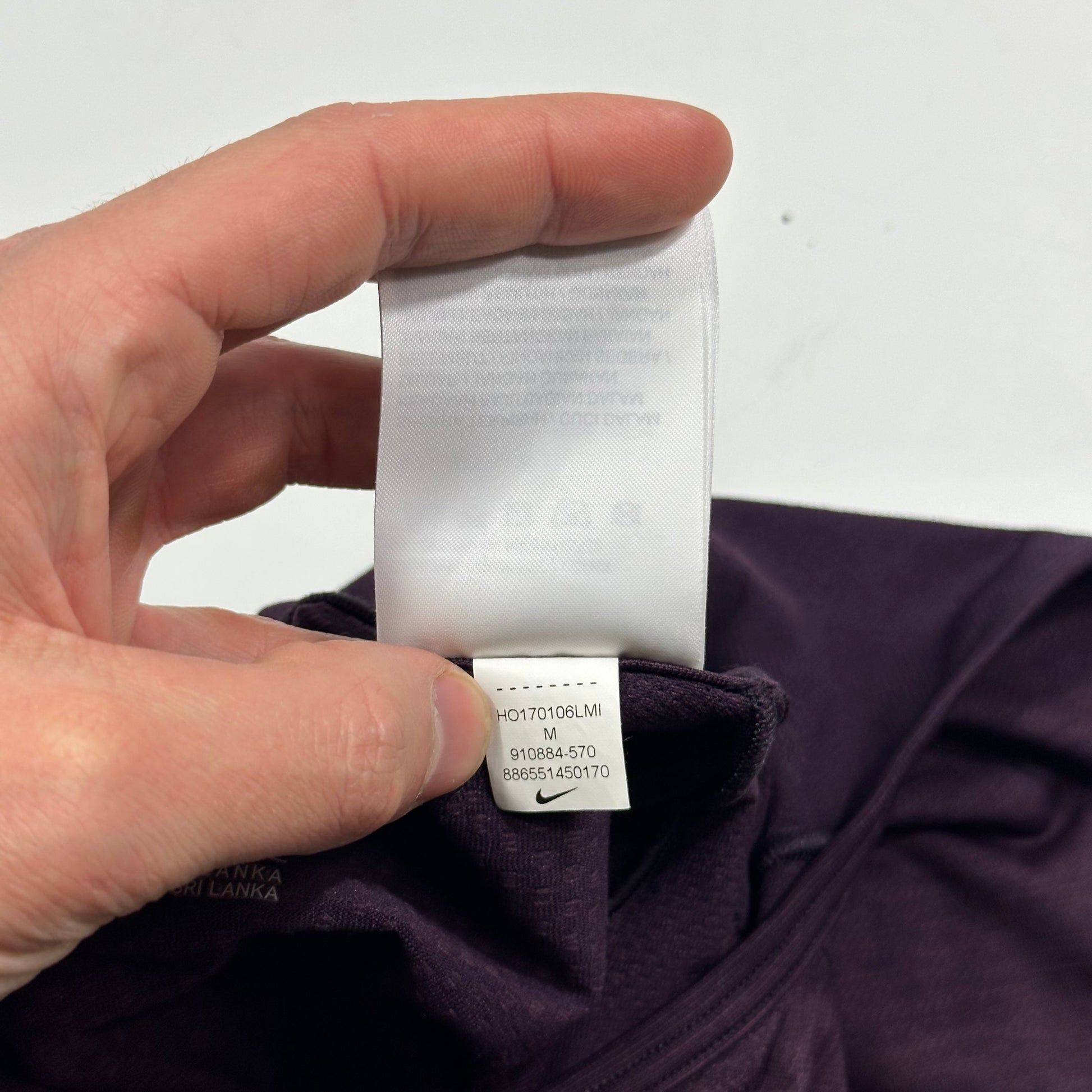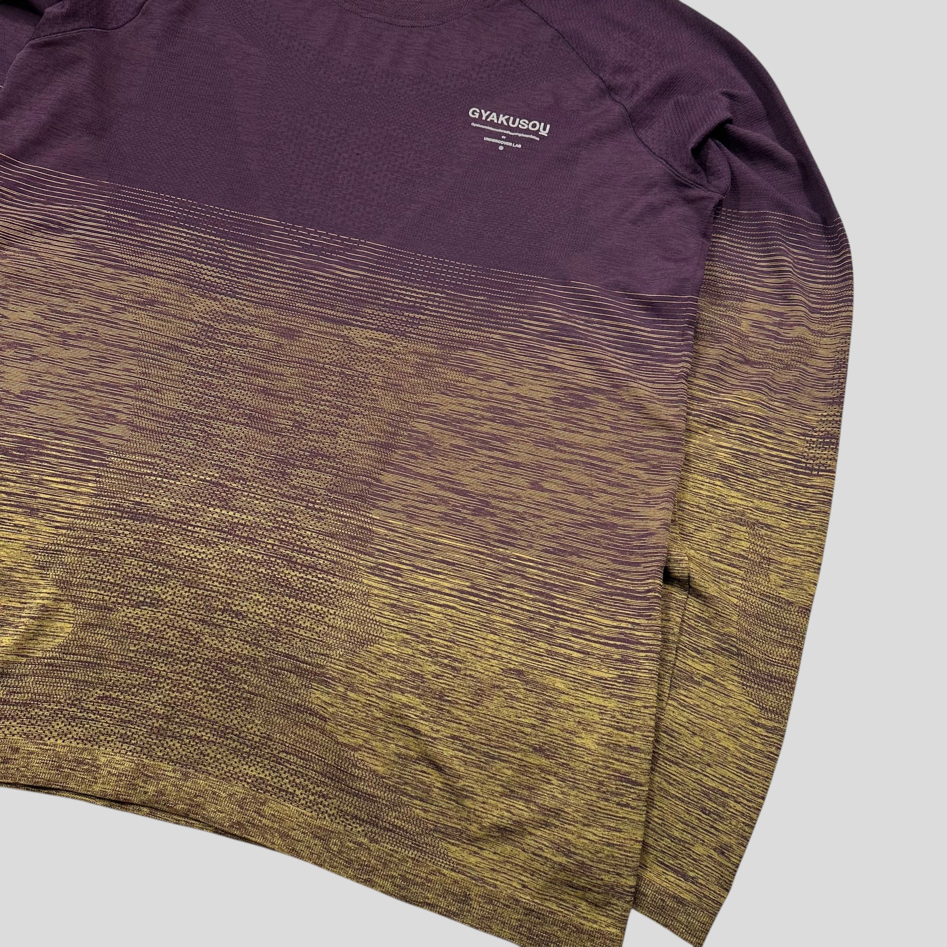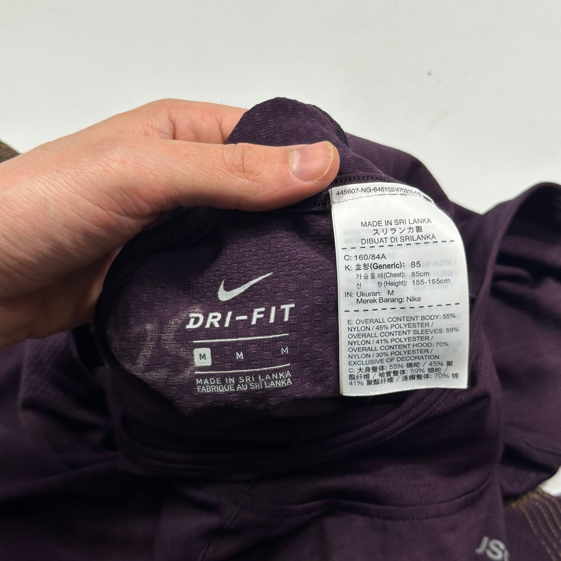 Rare 2017 Aeroreact ultra breathable and lightweight sport hoodie, purple and yellow sweat map graphic, Nike Undercover logo to chest and Nike swoosh on lower back.