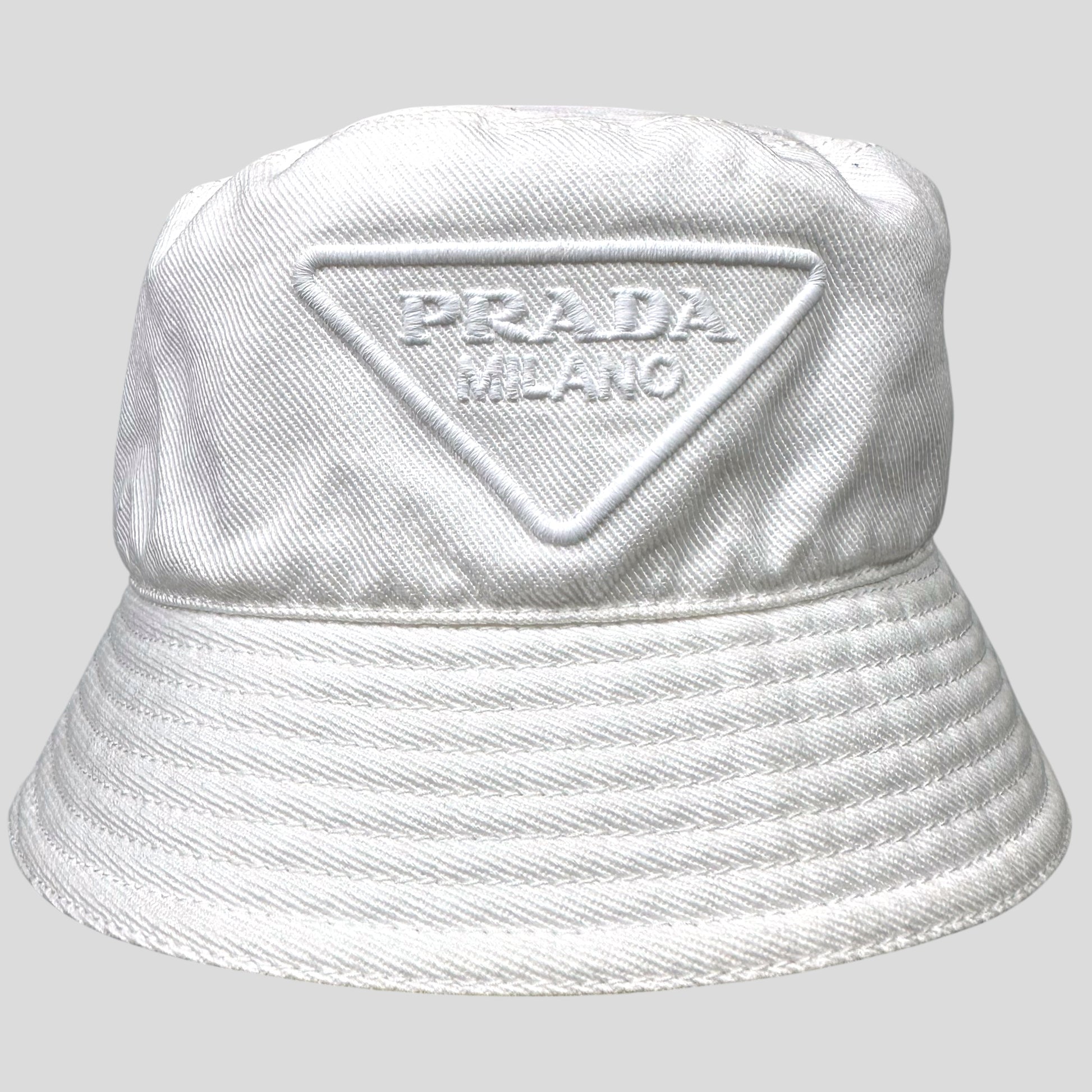 Prada 2022 Embroidered Cotton Triangle Logo Bucket Hat - L