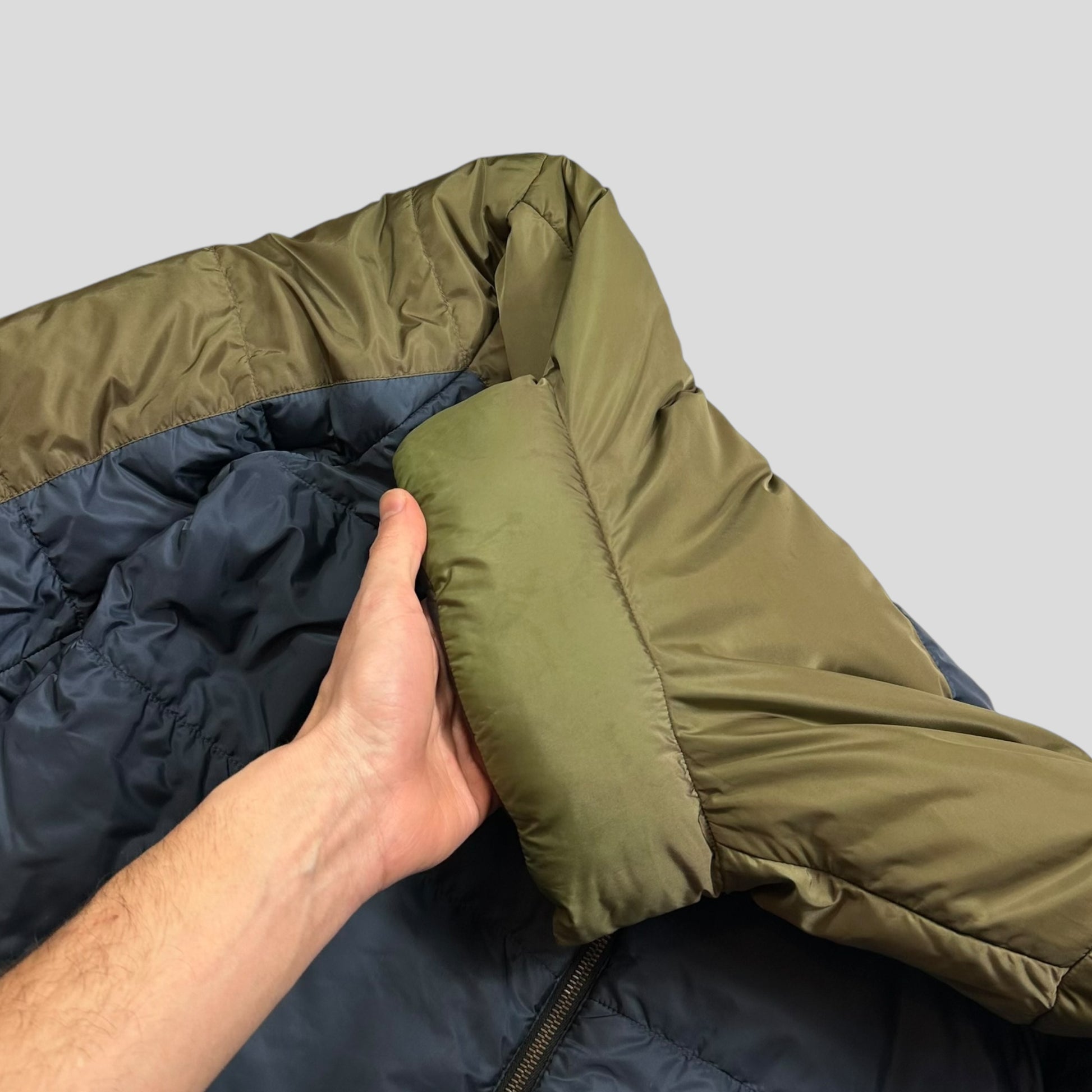 Prada Milano 2012 Leather Reversible Triangle Logo Nylon Puffer Jacket - L