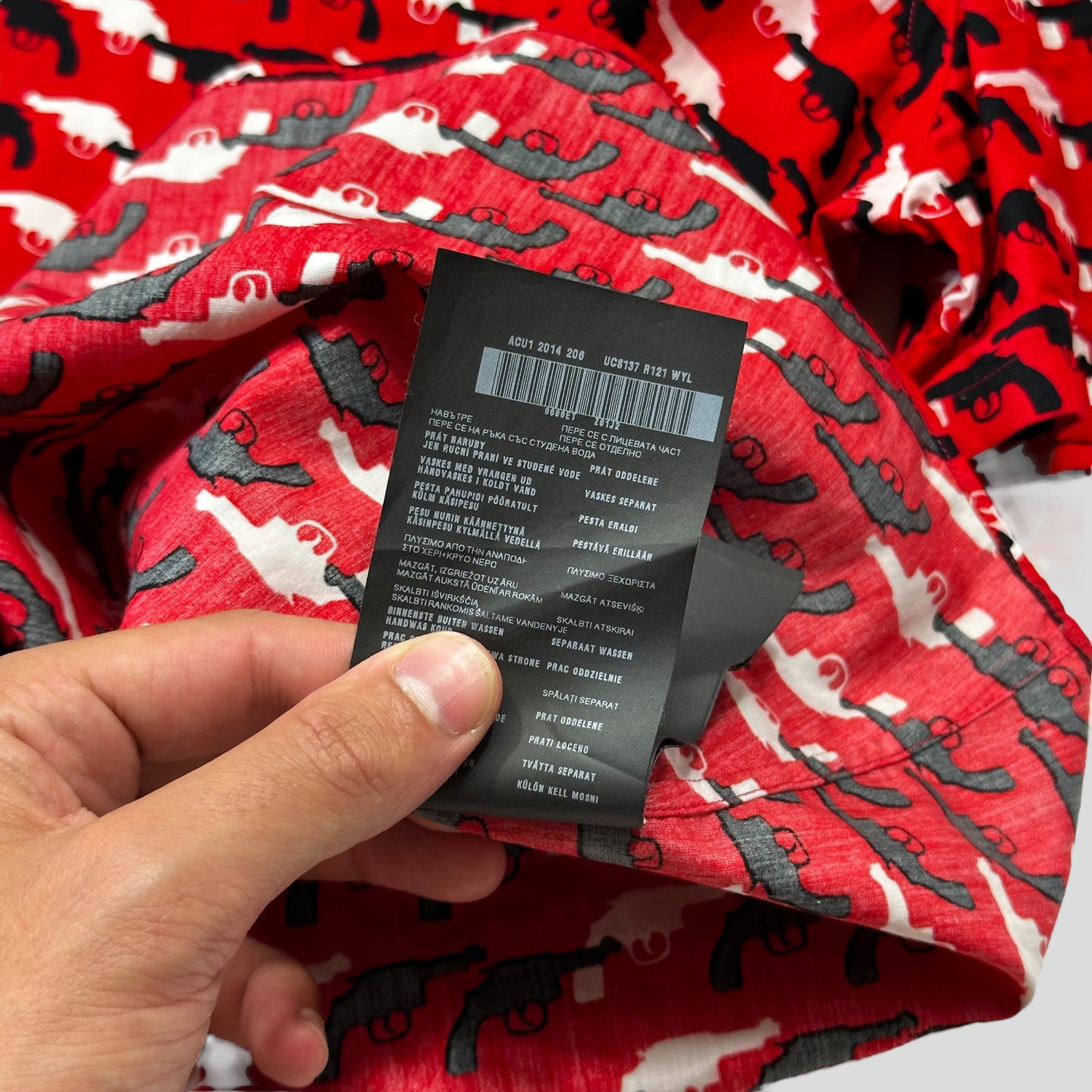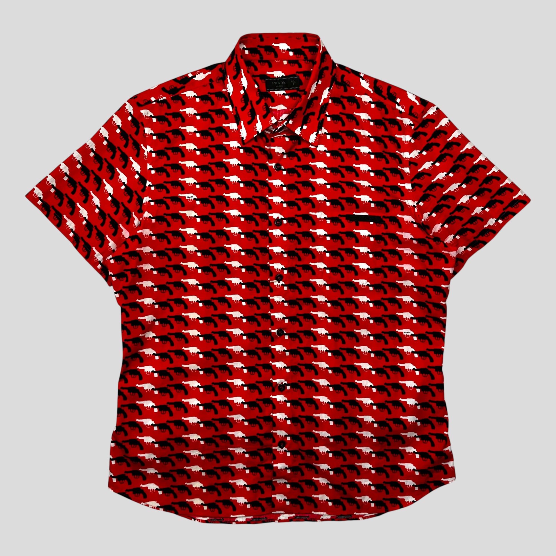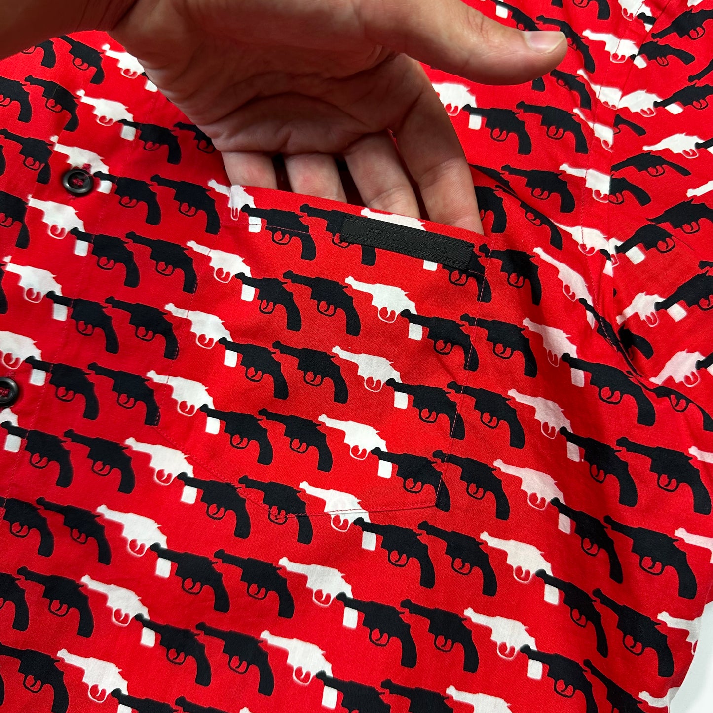 Very rare 2014 Prada red revolver print short sleeve cotton shirt, mini logo hit on the right side, embroidered black tab logo to chest pocket, lovely quality.