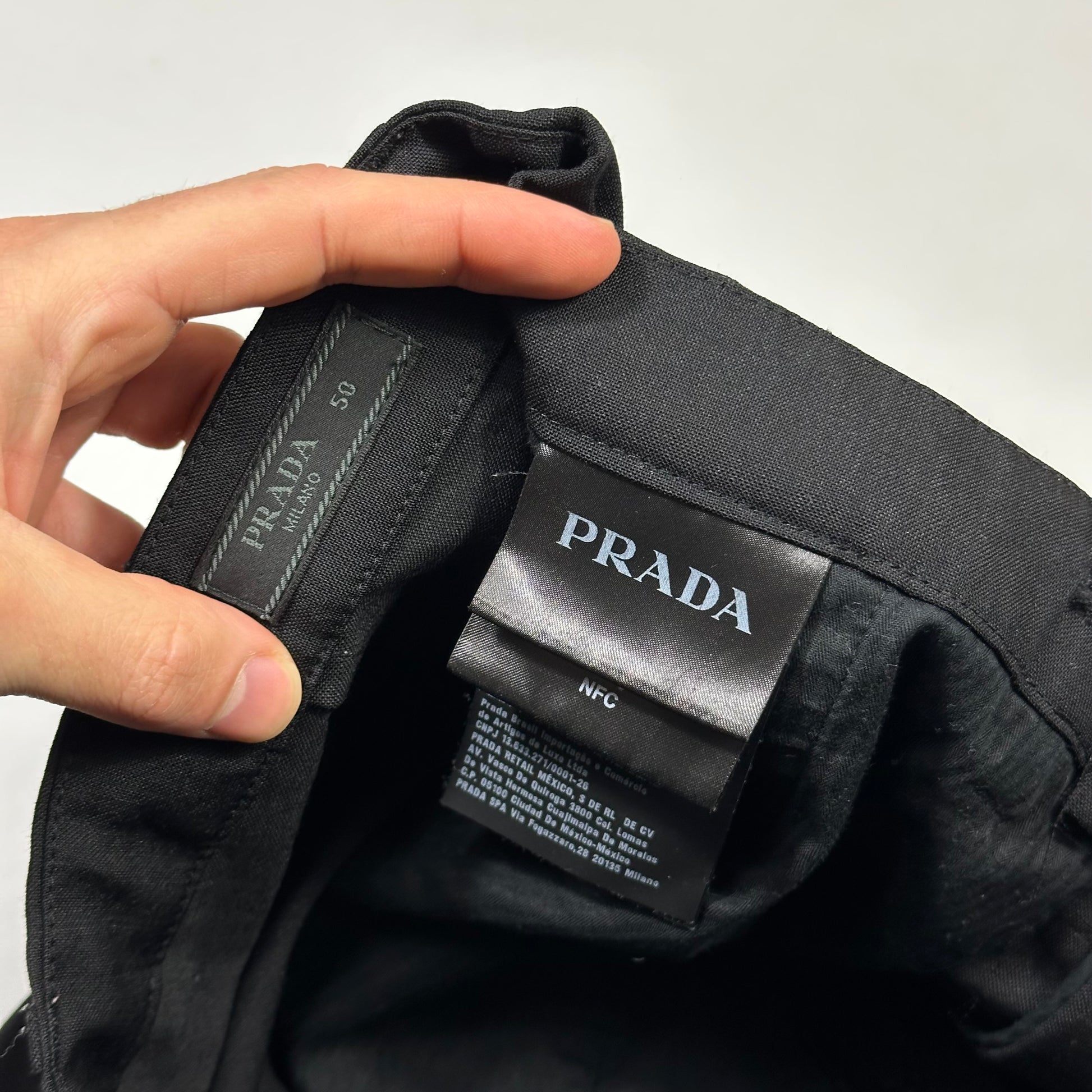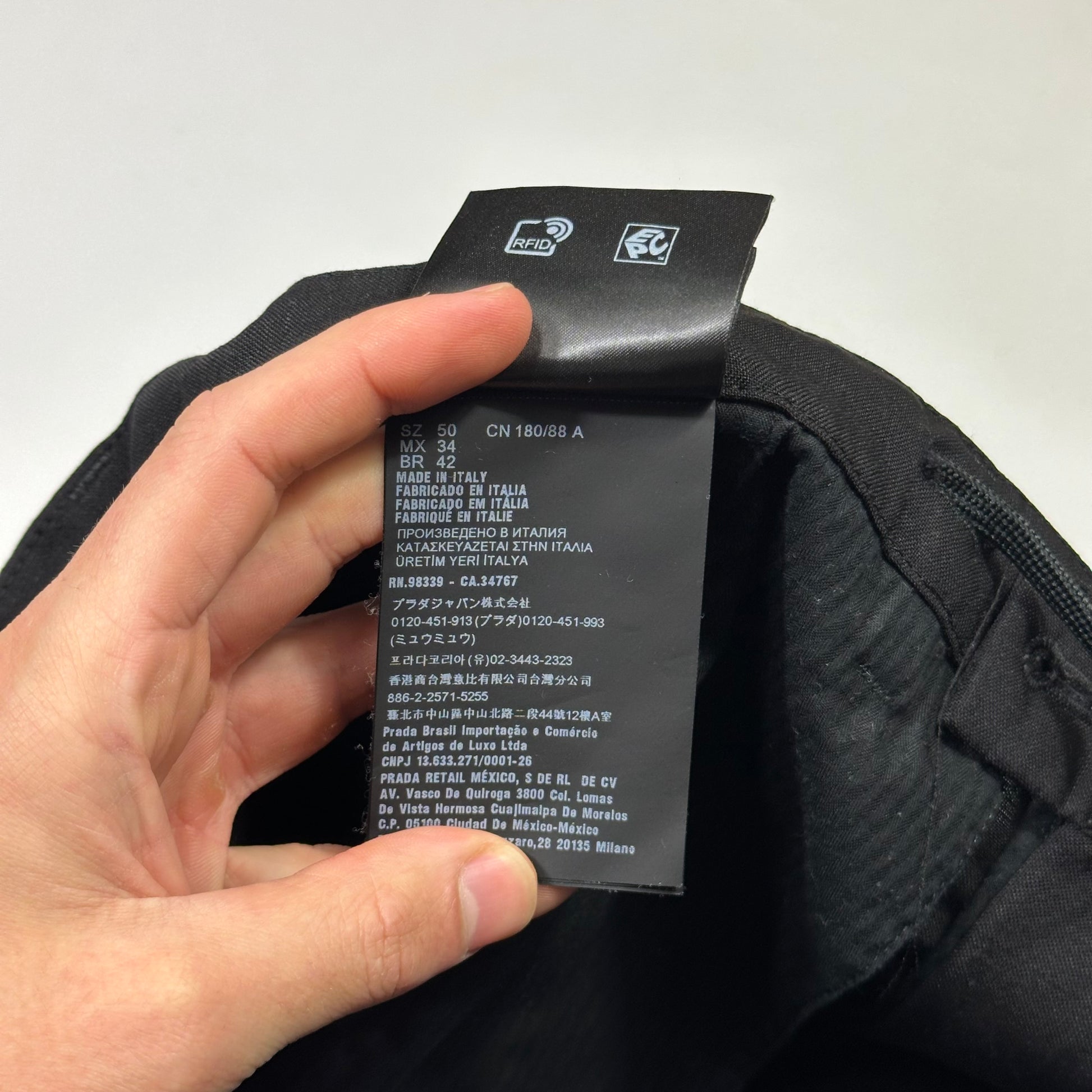 Prada Milano 2022 Mohair & Wool Striped Plaque Logo Trousers - IT50 (L)