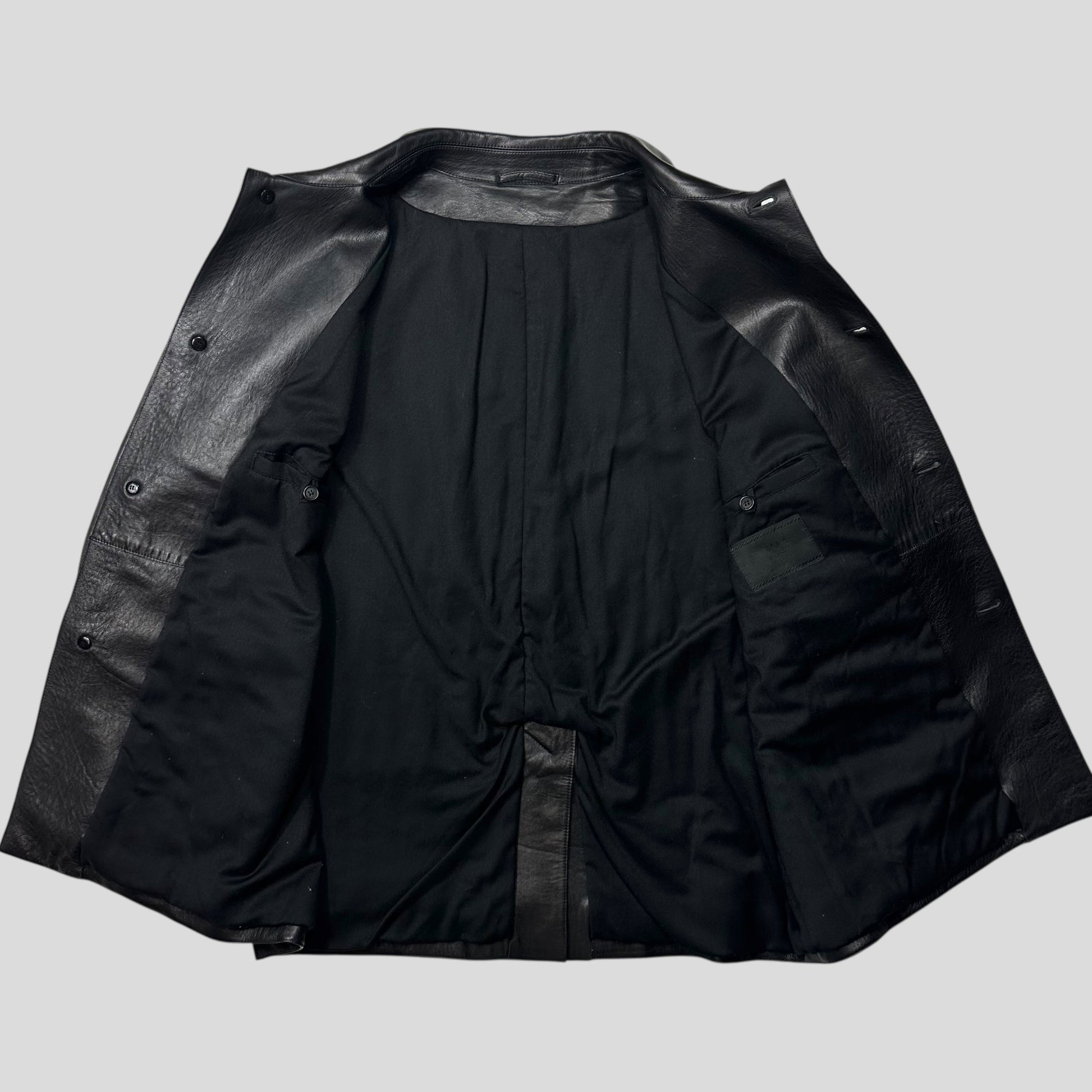 Extremely rare Prada Milano mainline Fall Winter 1998 Lambskin Full Grain Leather super soft and buttery supple leather chore / car coat, incredible piece, lined with a wool body and rayon sleeves, super warm yet wearable almost all year round.