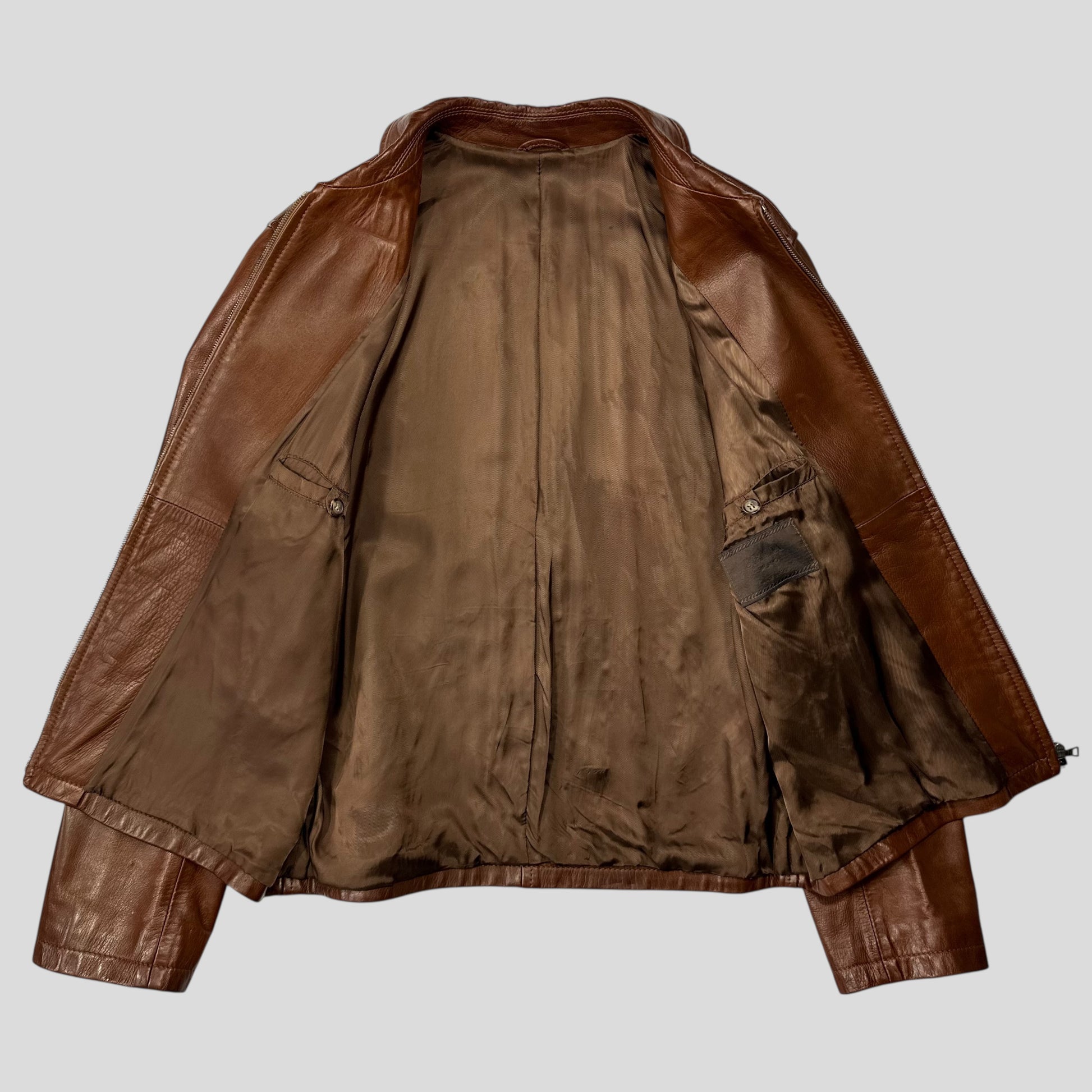 Prada Milano FW98 Whiskey Leather Nylon Lined Zip Work Jacket - IT50