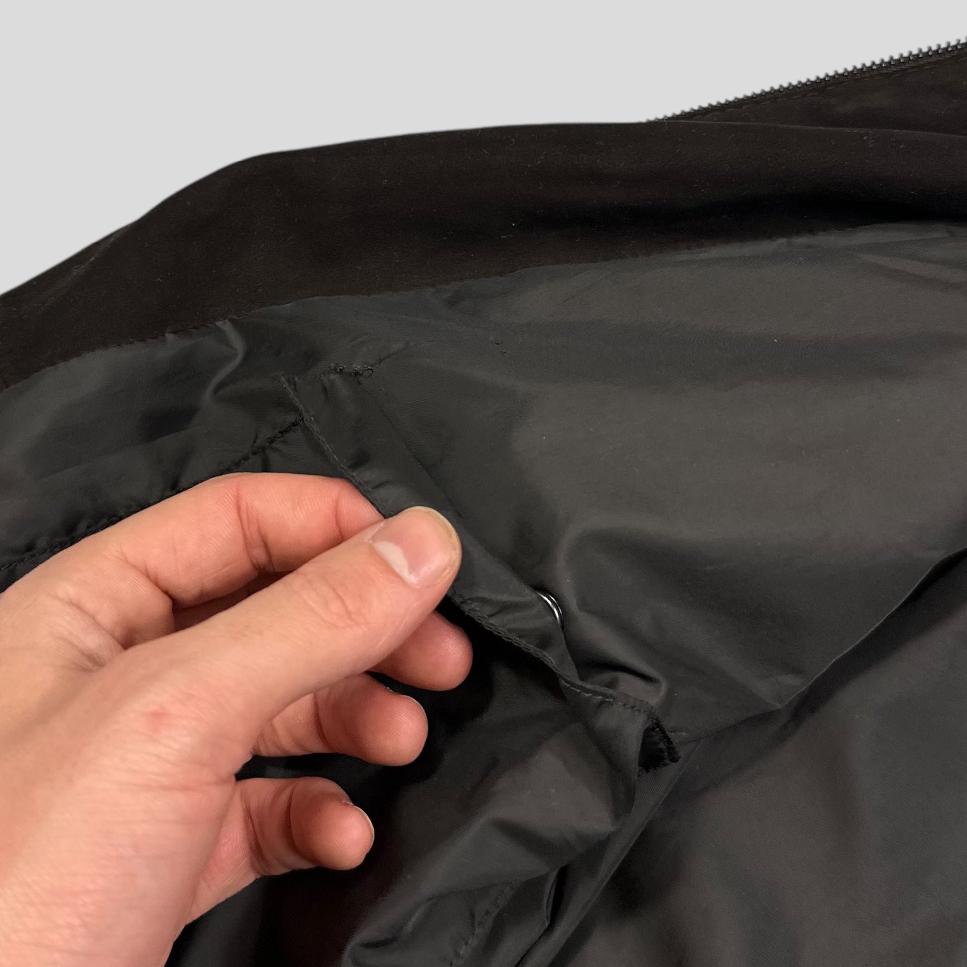 Made in Italy, silky grey nylon lining with inside pockets.