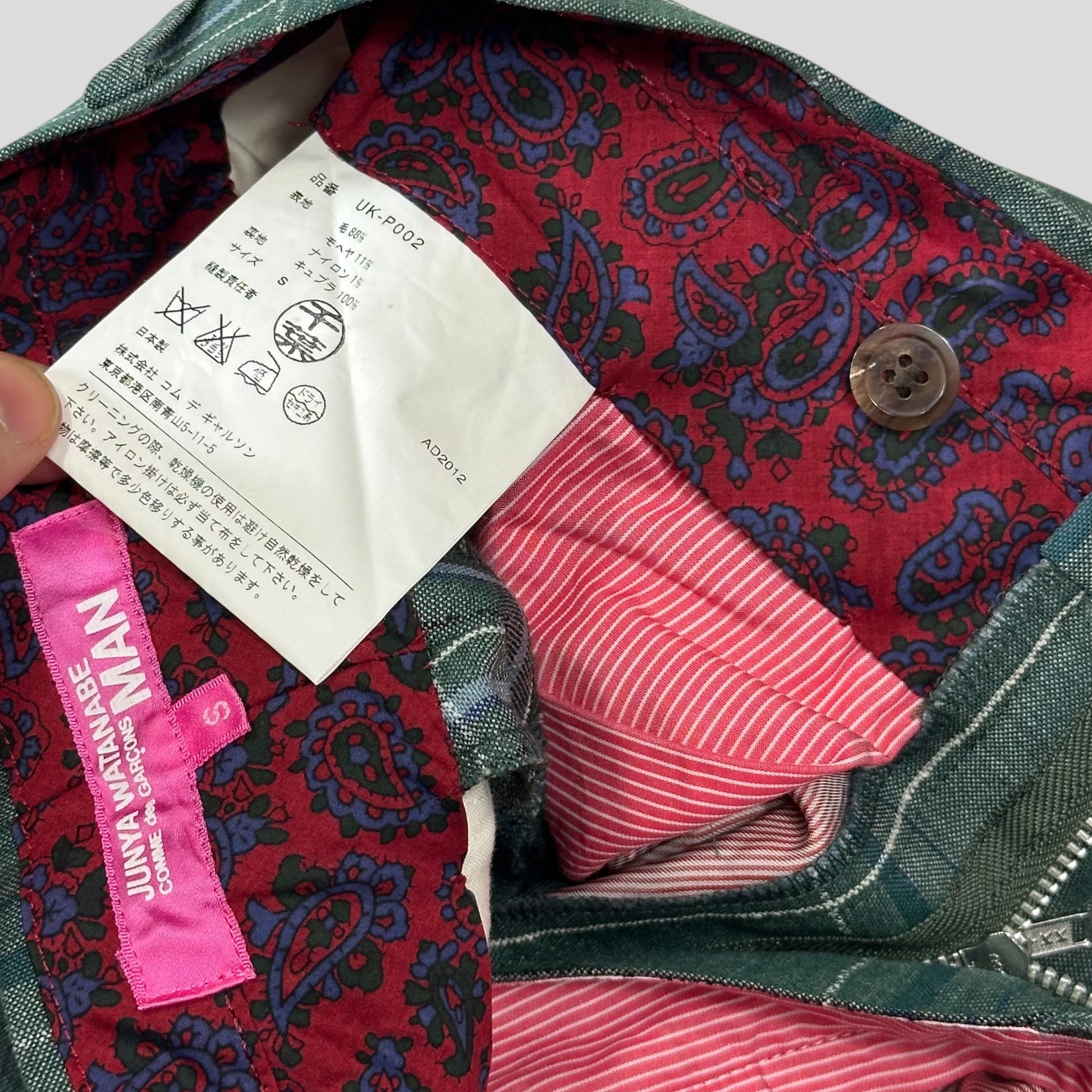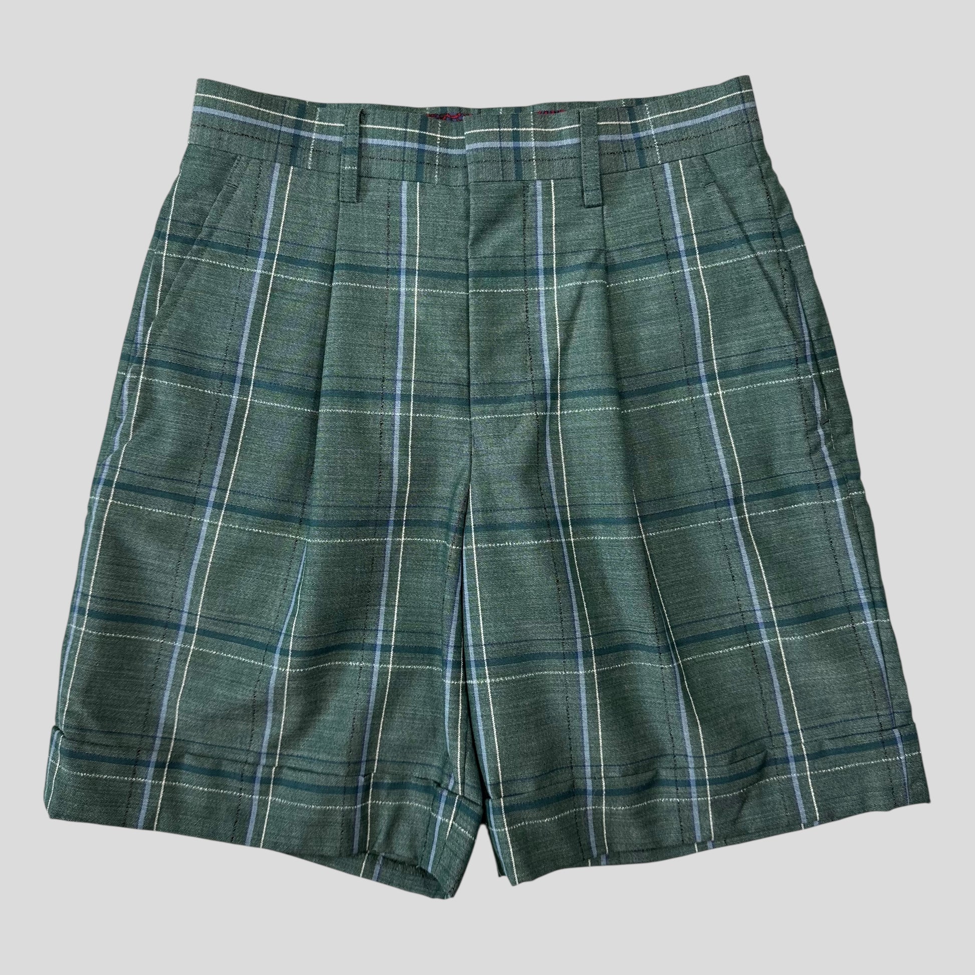 Very rare 2012 Junya Watanabe MAN pink label shorts, a label used on pieces that are generically unisex, lovely pair of green check shorts with baby blue lines, mohair and wool mix construction, cupro lining for comfort.