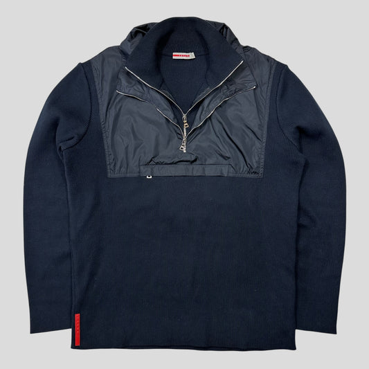 Prada Sport 00’s Nylon Panelled Twin Collar Knit - L