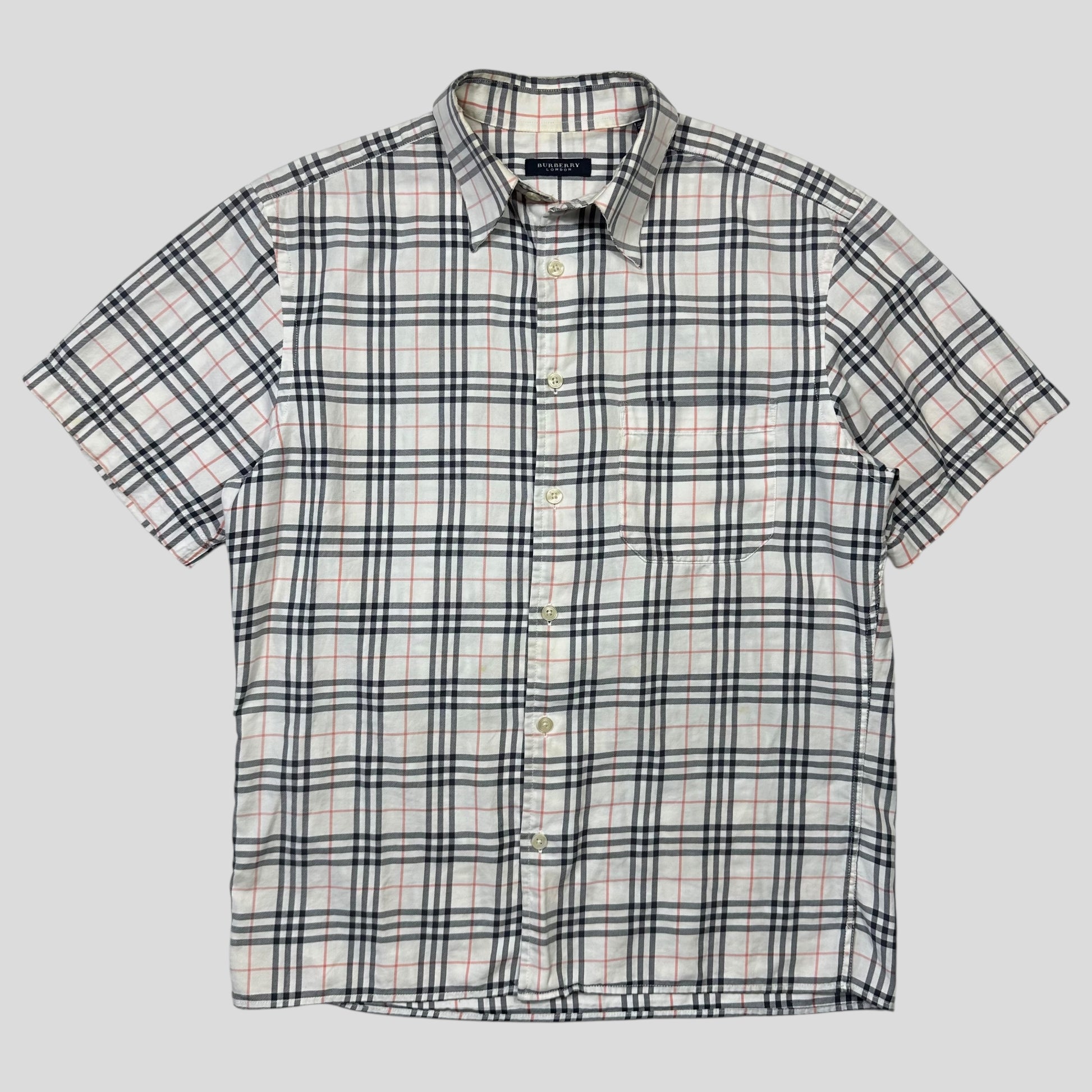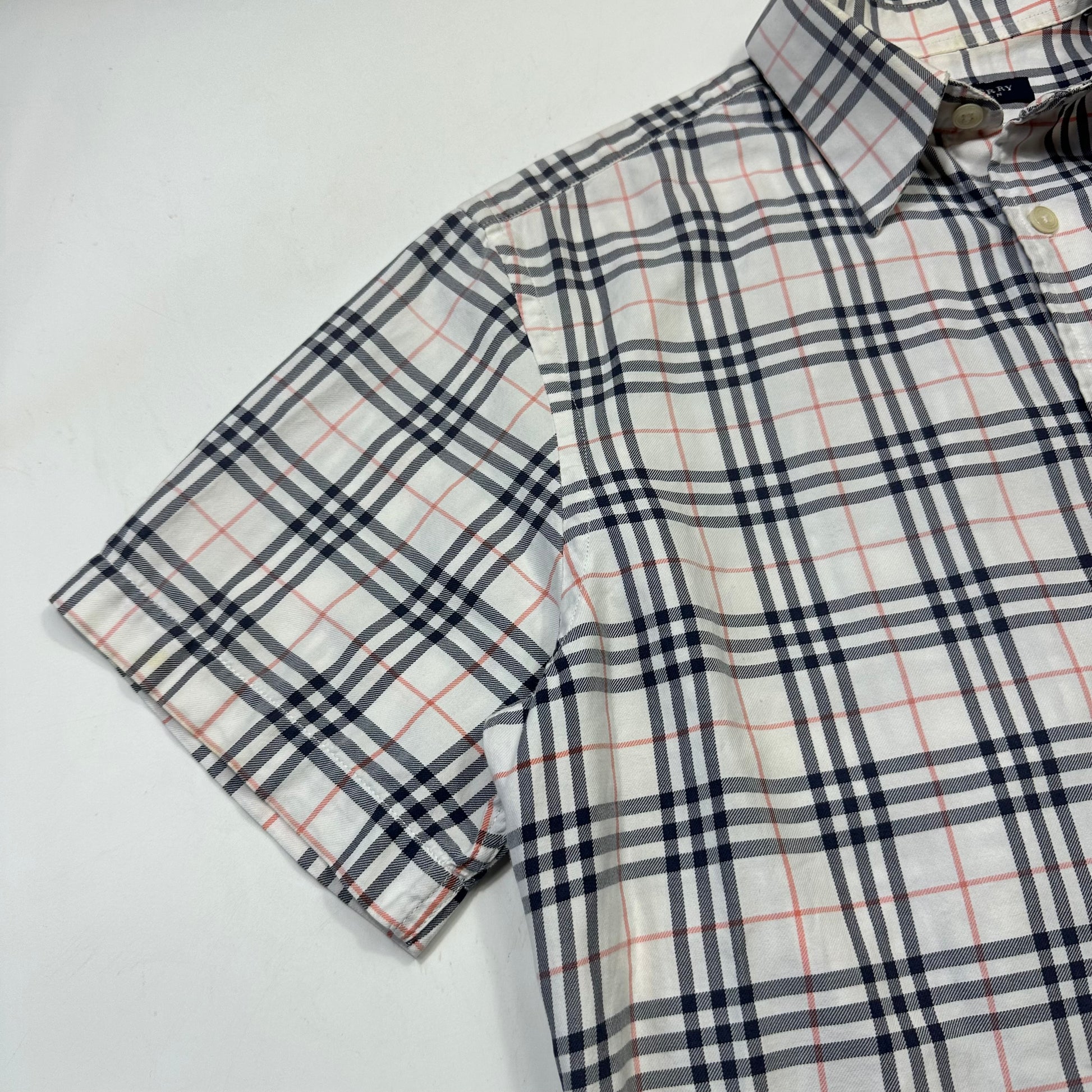 Rare Burberry made in England grey nova check short sleeve shirt, lovely plaid pattern, great quality.