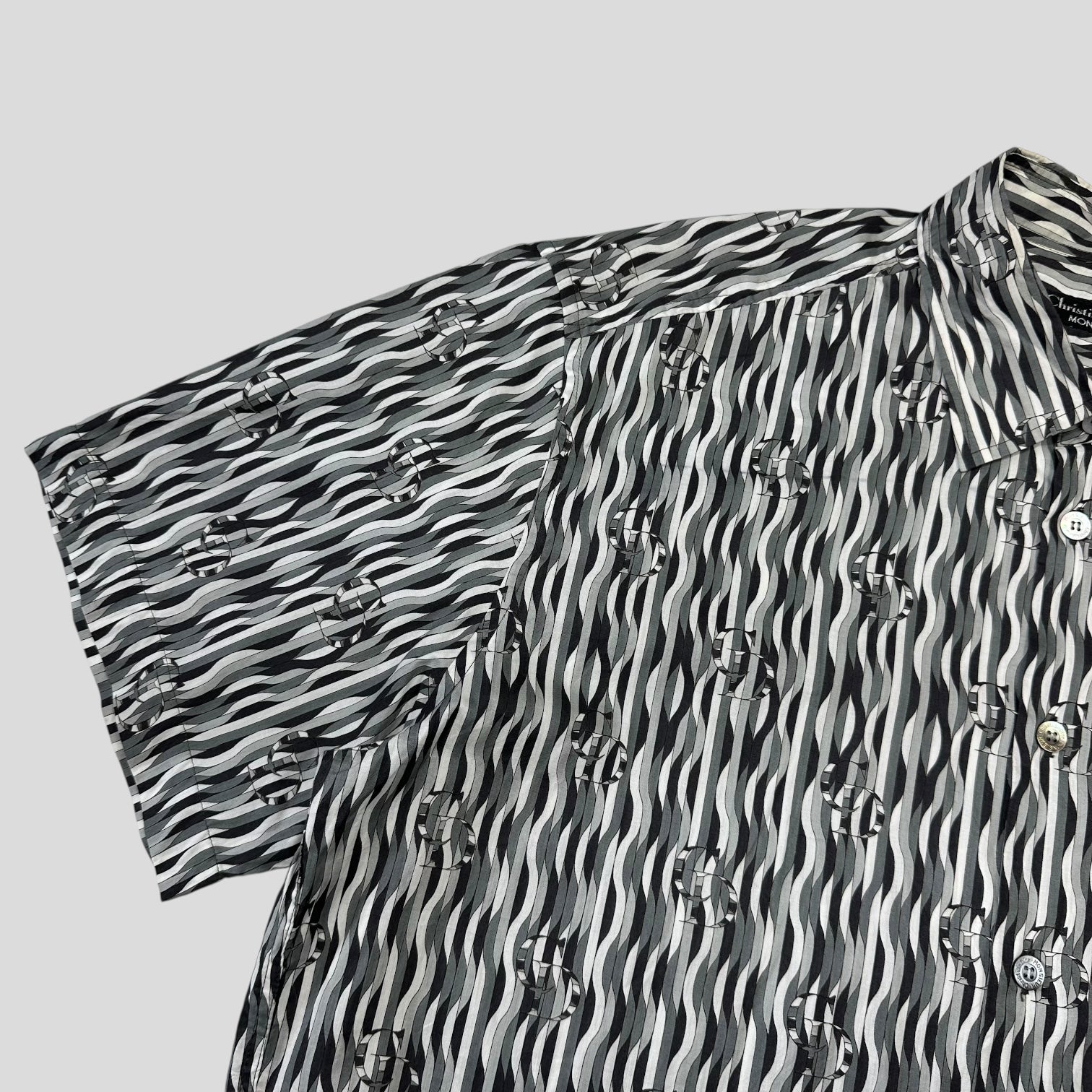 Very rare 1990’s Christian Dior optical illusion black white and grey pattern print shirt, unique print with CD spellout logos embedded in the print creating a 3D effect, branded embossed logos on buttons, lovely quality.