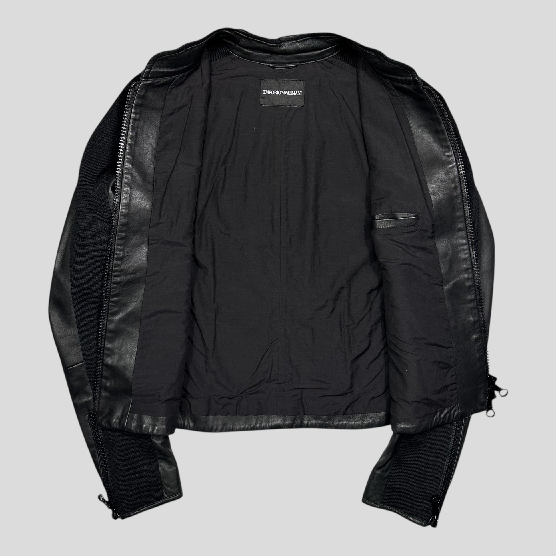 Emporio Armani 2006 Leather Panelled Biker Moto Jacket - IT46 (S)