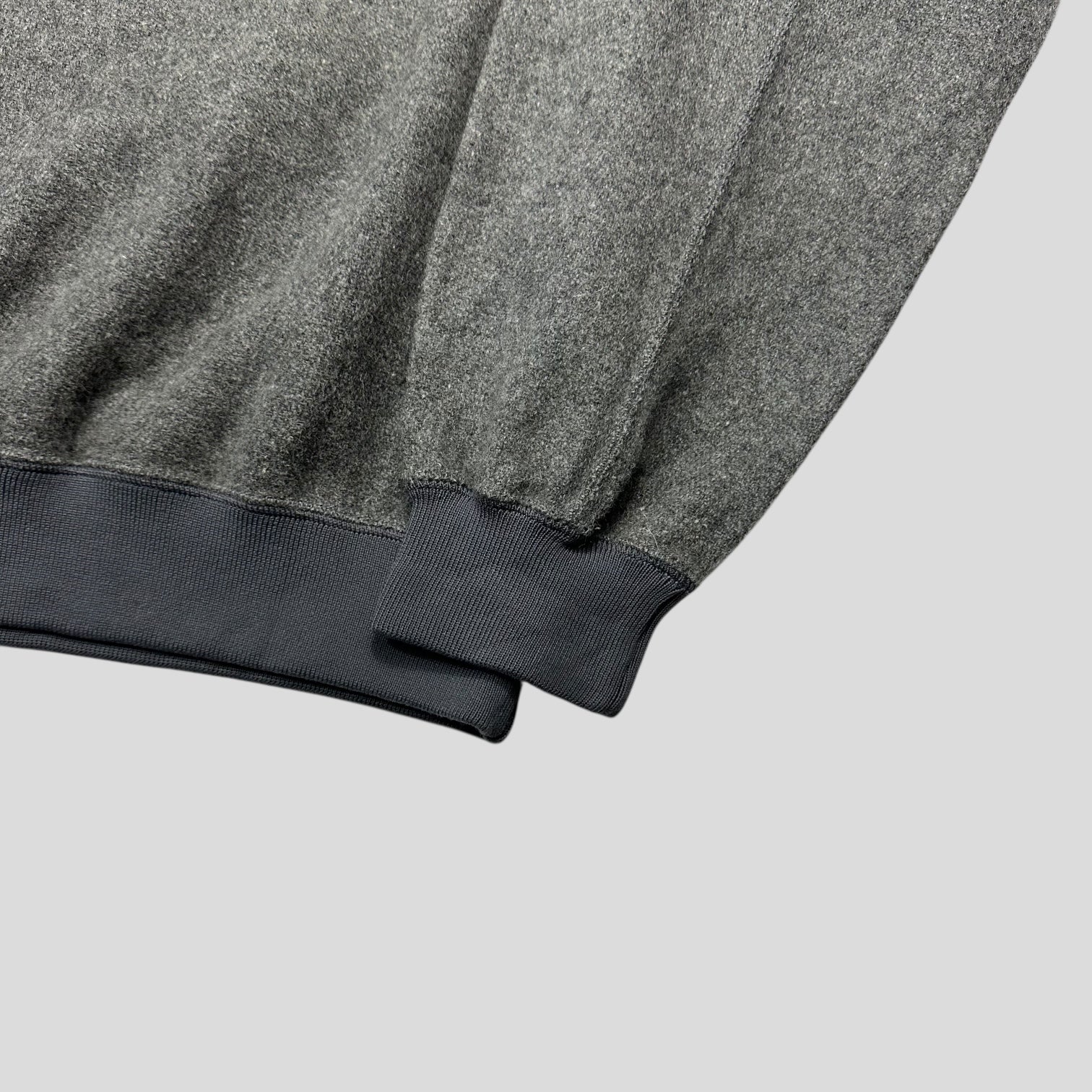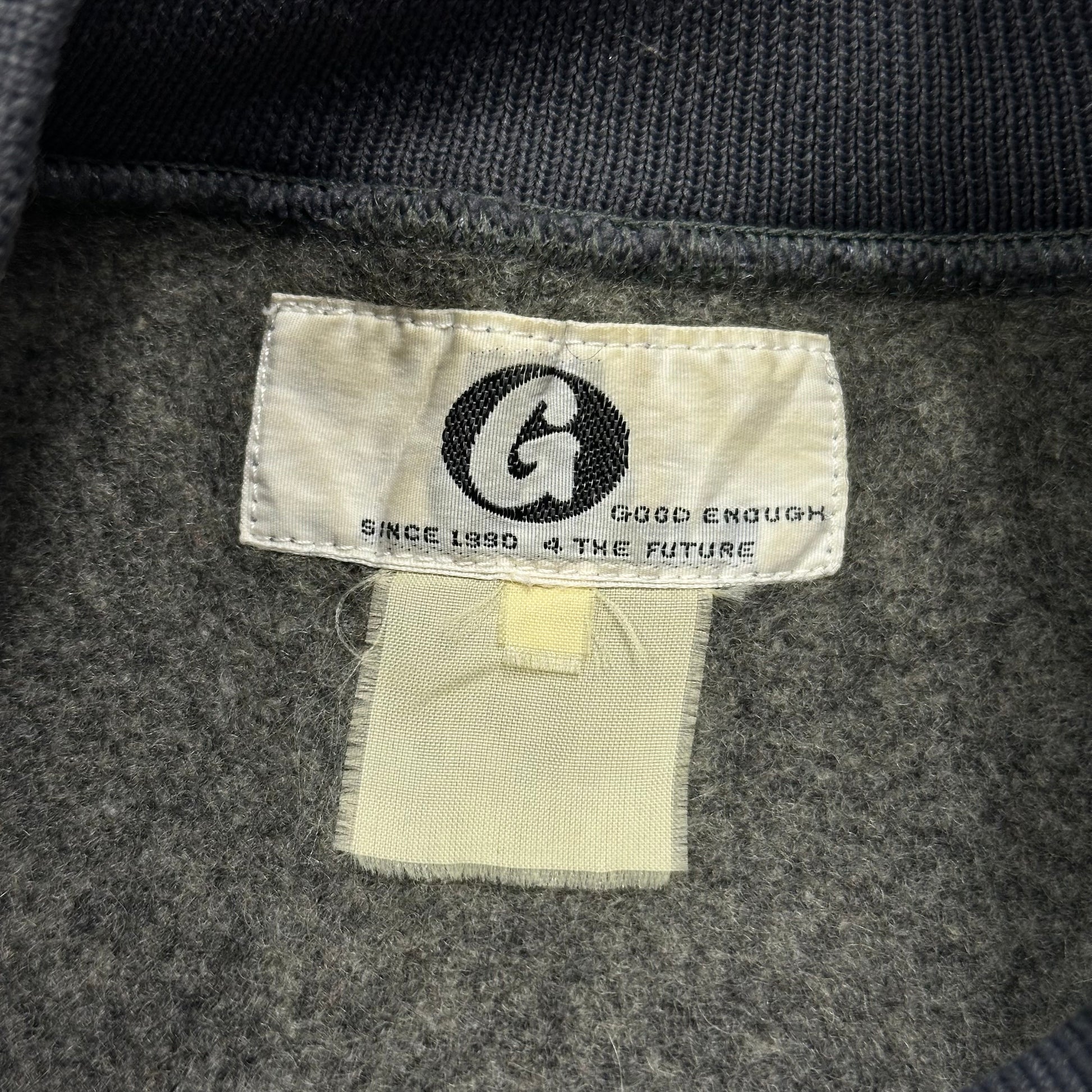 Very rare heavyweight grey wool GOODENOUGH GDEH boxy crewneck jumper sweatshirt, felt embroidered logo arc spellout to chest.