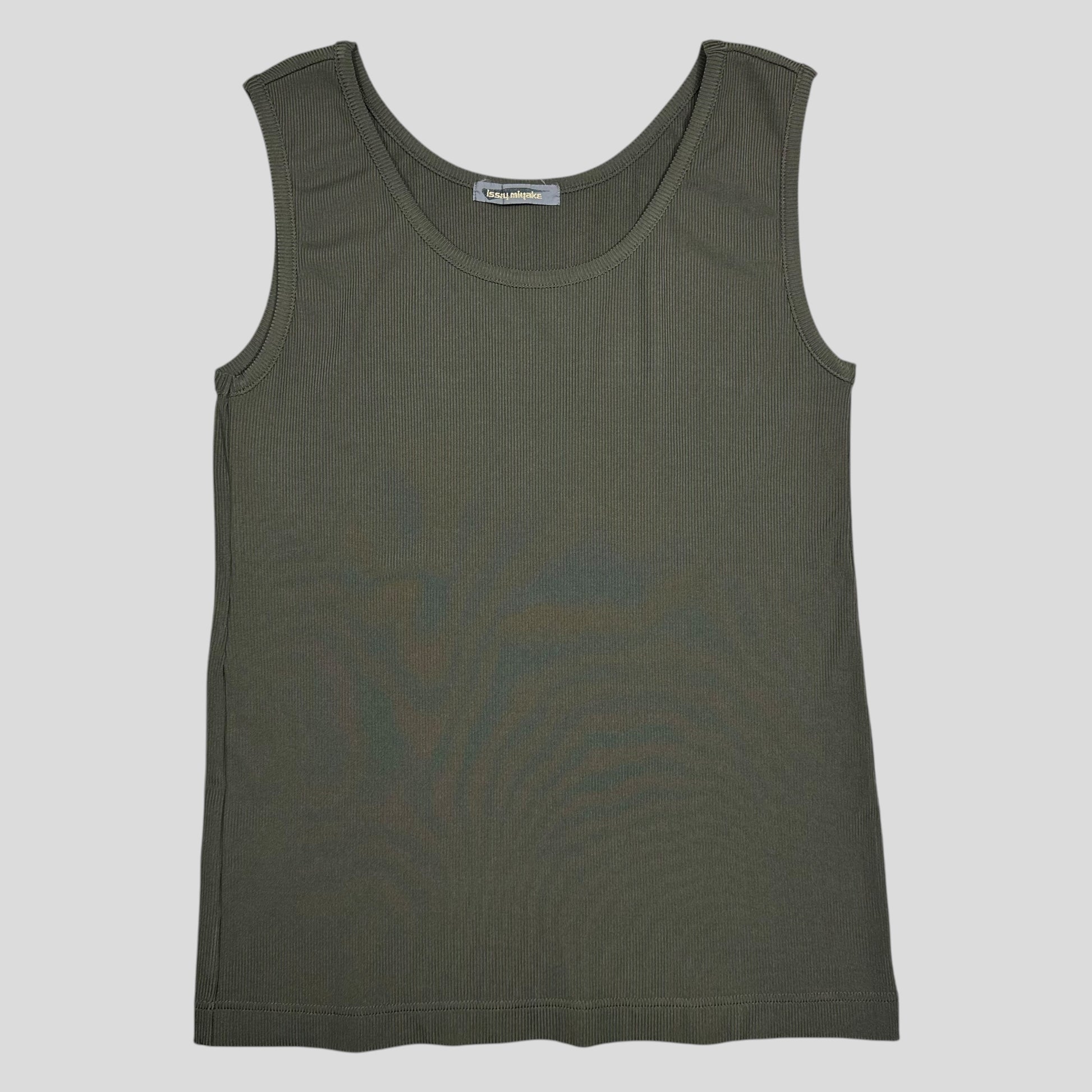 Very rare 1980’s Issey Miyake grey / green ribbed cotton vest tank top, lovely pleated ribbed material, made in Japan, on the rare paintbrush tag.